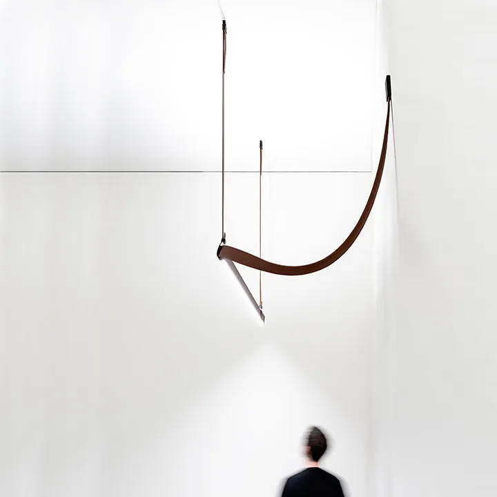 Подвесной светильник Belt - это настоящая гибкость, он подстраивается под окружающее пространство и сливается с ним воедино. Баланс мягкости кожи и жесткости алюминия выливается в извилистые изгибы и становится особенностью лампы Belt.