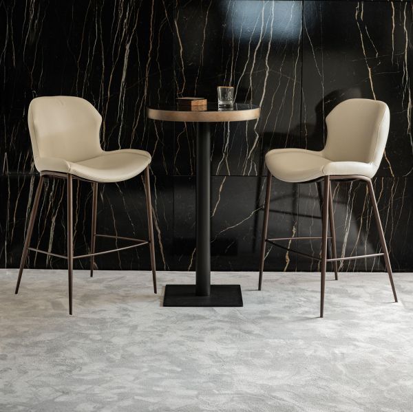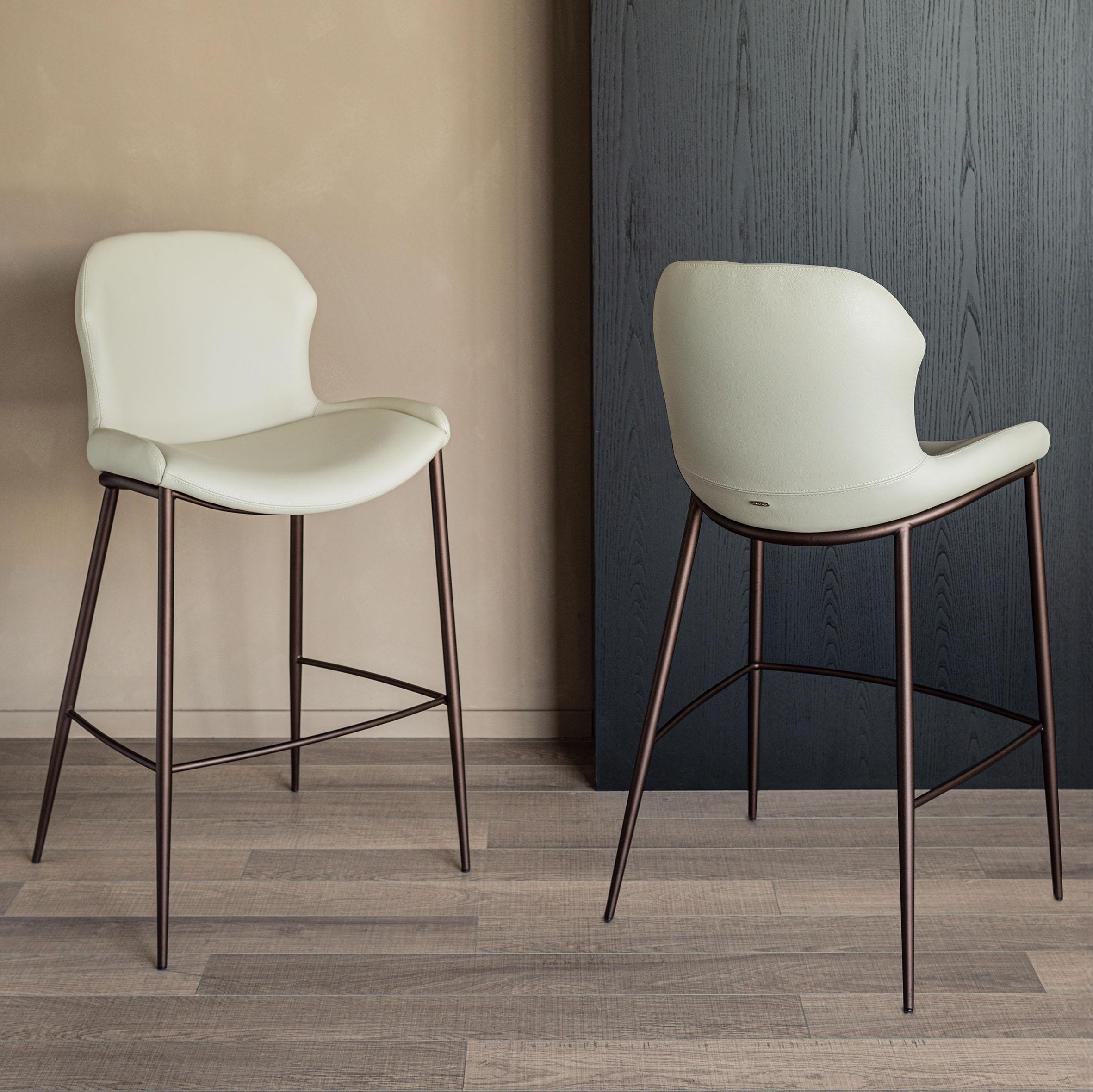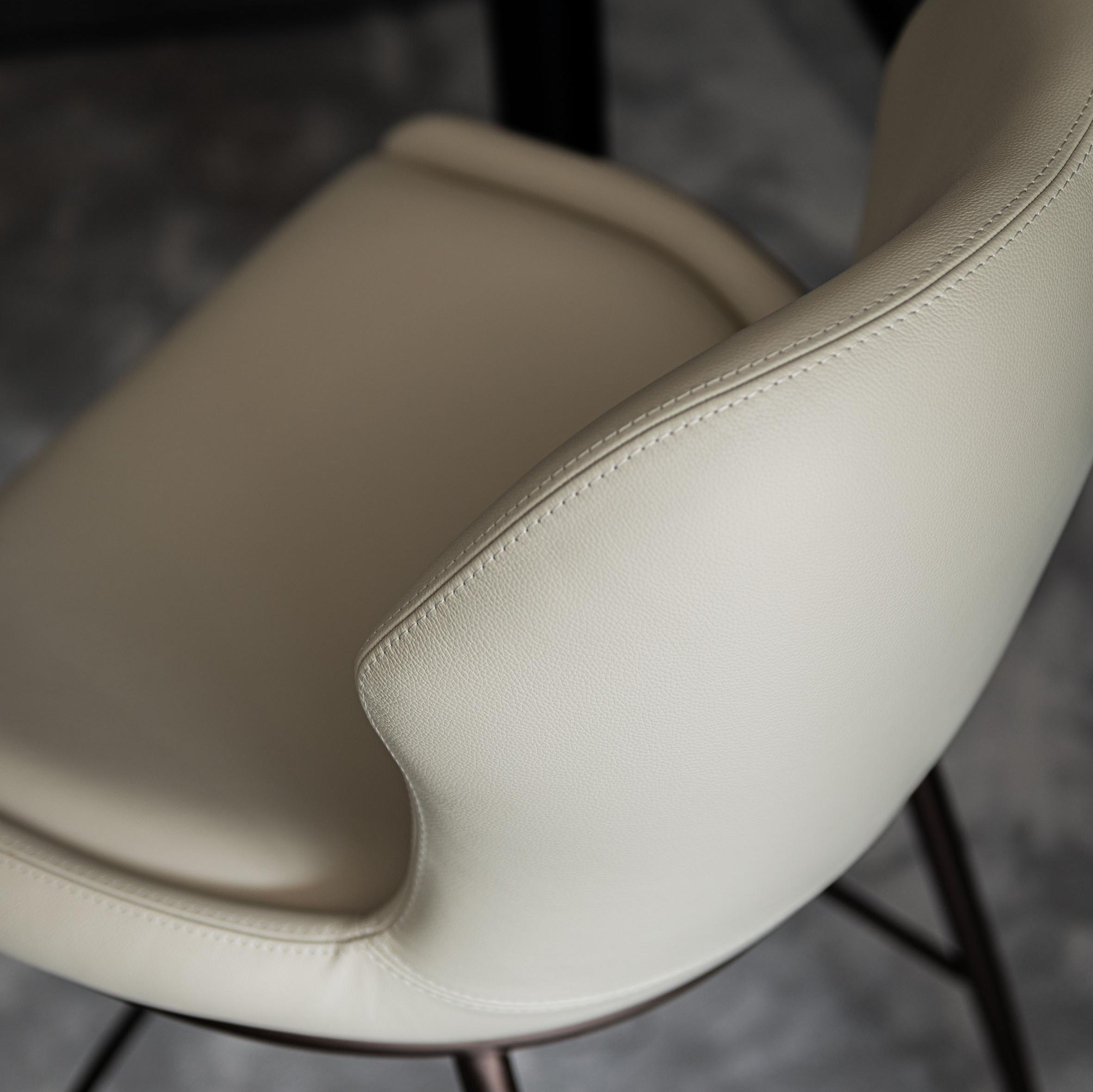 Чтобы гармонично дополнить интерьер, вы можете комбинировать их с дизайнерскими стульями у стойки от Rachel Sgabello. Как и в случае с другими моделями кресел, металлический каркас доступен в различных вариантах высоты и формы, а оттенки сочетаются с элегантной кожей и тканями из коллекции sample.