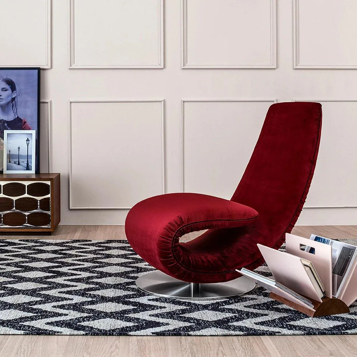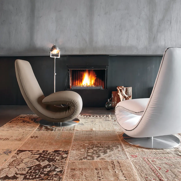 Ricciolo - это кресло-шезлонг. Изделие, способное придать уникальность любому помещению. Запатентованный механизм складывания делает это фигурное сиденье незаменимым. Доступны различные варианты обивки, такие как кожа, экокожа, натуральная кожа и эластичная ткань Orchidea.