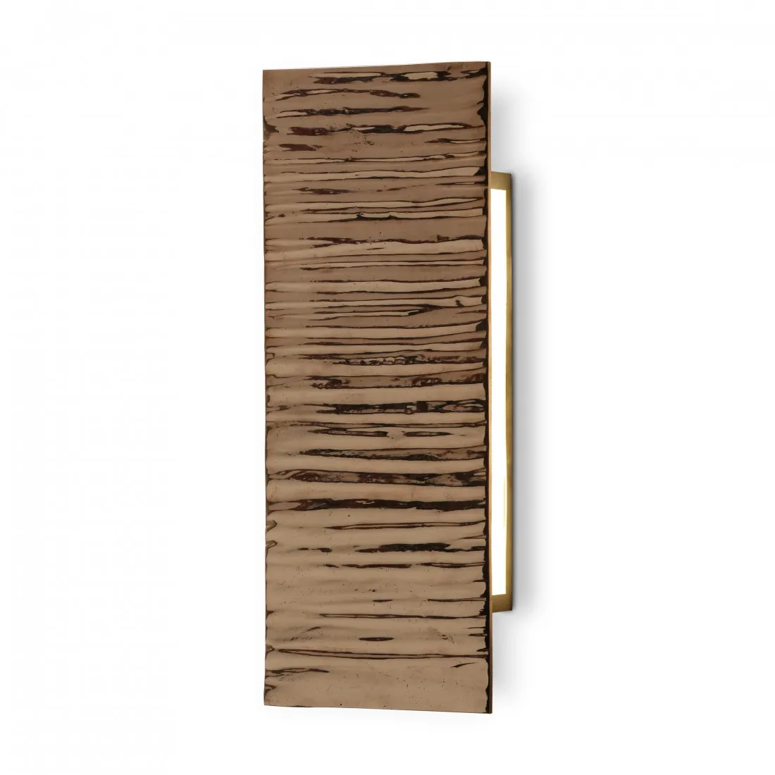 Настенная лампа RIPPLE LAMP. Изысканная рифленая поверхность , отделанная роскошной полированной бронзой с естественной патинирования. Похоже, что расплавленный металл стекает вниз по фактурной пластине. удобной .Отличное дополнение к прихожей или ванной.