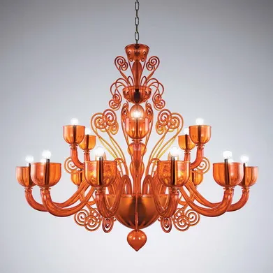 Выдувное муранское стекло прозрачное, оранжевого цвета.