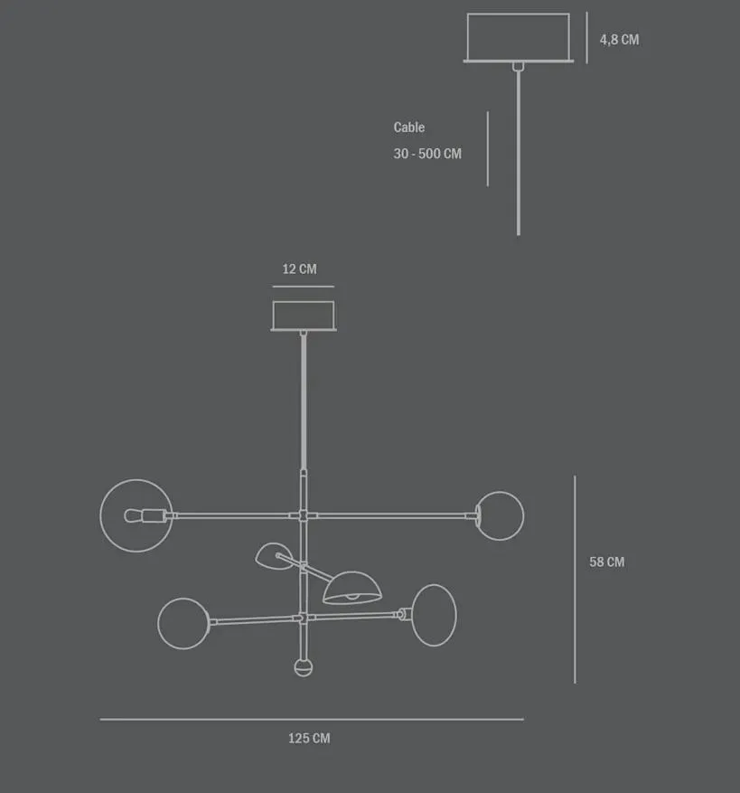 Хромированный корпус придает светильнику современную изысканность, в то время как внутренняя поверхность каждого абажура окрашена в теплый белый цвет, что придает освещению мягкое, манящее свечение. Красиво выполненный металлический корпус с бронзовым покрытием, тщательно обработанный вручную, создает потрясающий контраст, который дополнит любое помещение.