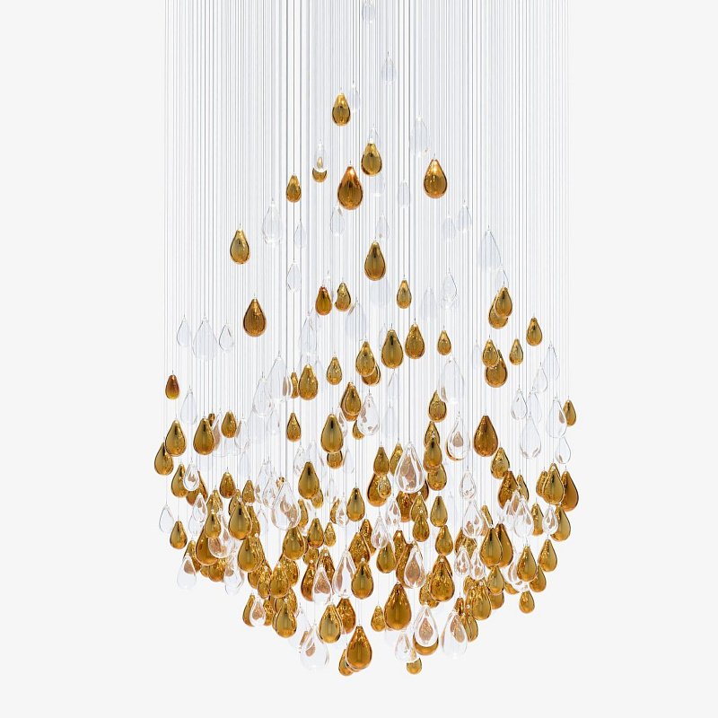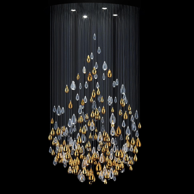 Дизайнерская люстра Lasvit Droplets Sculpture Large on Ceiling - это вдохновение природой. Светильник Дроплетс от Ласвит подобен застывшему моменту. Словно остановленный дождь повис в воздухе, окрашенный закатным солнцем. Дизайнеры Ян Плечач и Генри Вельгус играют с магией воды, воздуха и гравитации, собирая композицию каждой лампы Droplets. Сочетание света, золотой зеркальной поверхности и цветного стекла создают ощущение глубины и движения. Люстра Droplets - это замерший момент счастья.