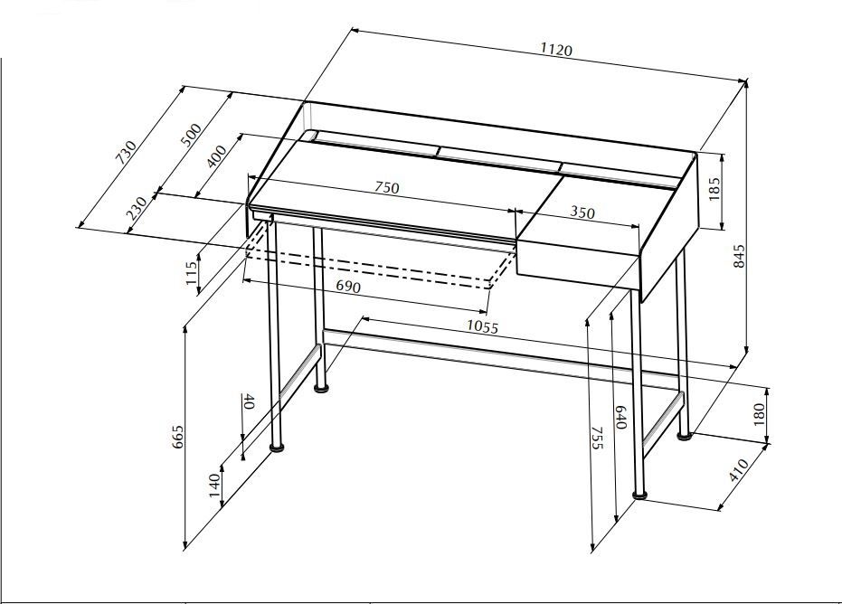 Длина 112 см, Глубина 50 см, Высота 76/85 см