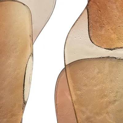 Стеклянный экран из расплавленного стекла. Композиция из трёх запечённых стекол в два слоя с неровными краями.