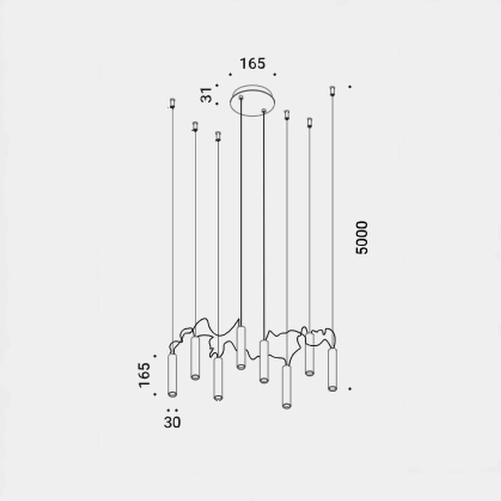 В люстре последовательно соединены диоды, используя очень слабый электрический ток и практически невидимые провода.