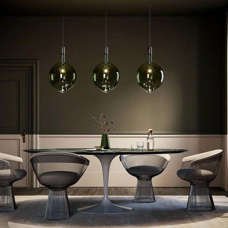 Возможен монтаж, как одинарного светильника, так и люстры с различным количеством подвесов.