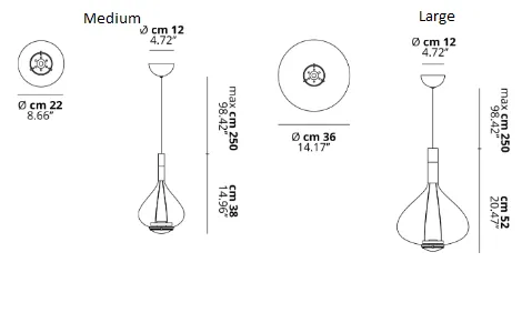 Модель Sky–Fall , доступная в двух размерах и четырех вариантах отделки, с цветовой температурой света 2700 или 3000 К.
