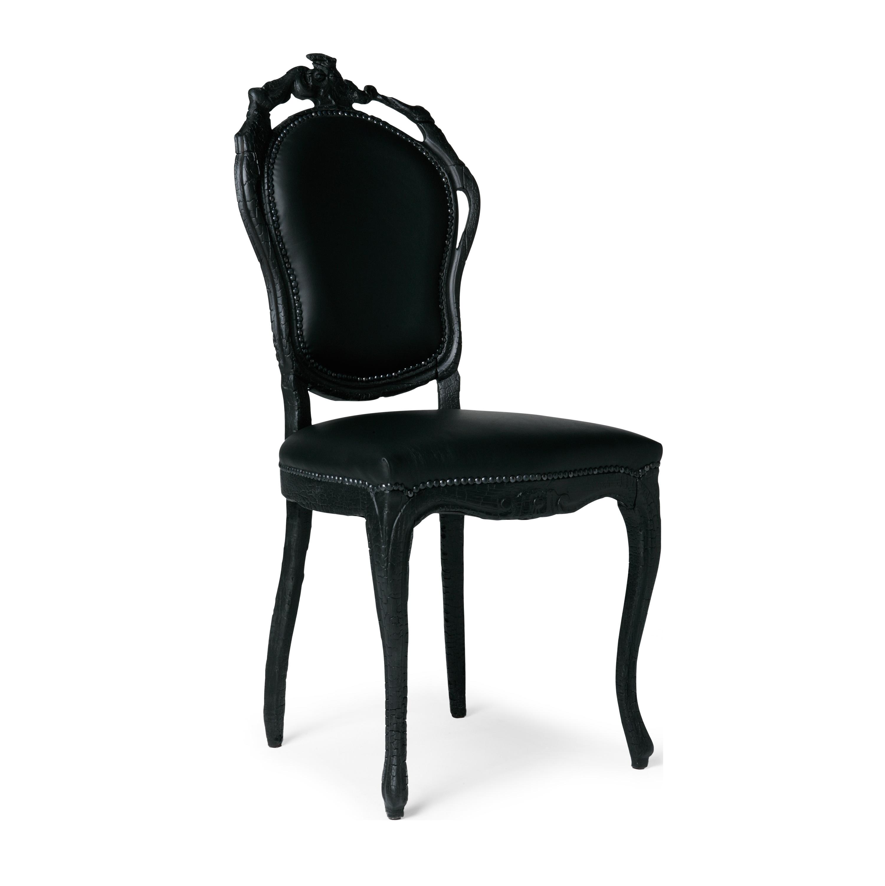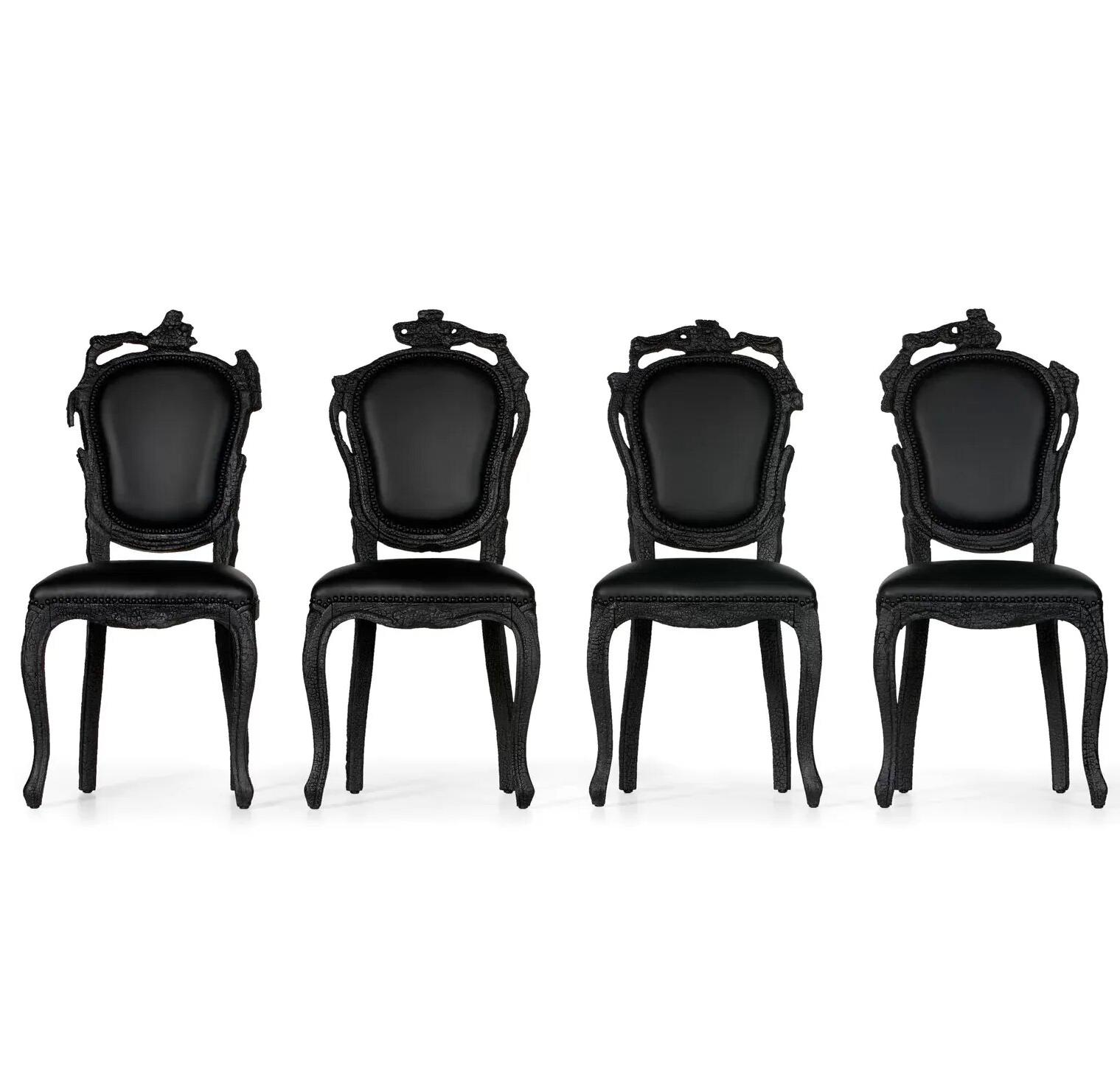 Красота и характер обожженного дерева теперь воплощены в долговечном материале, создающем странное ощущение, как будто сидишь на обожженной мебели. Маартен Баас воплотил свое увлечение огнем в новаторский подход. Отражая пламя в твердости дерева. Каждый стул уникален благодаря этому исключительному процессу производства. Подобно птице Феникс, предметы из дыма возрождаются из пепла, обретая новую жизненную силу и красоту самым необычным образом.