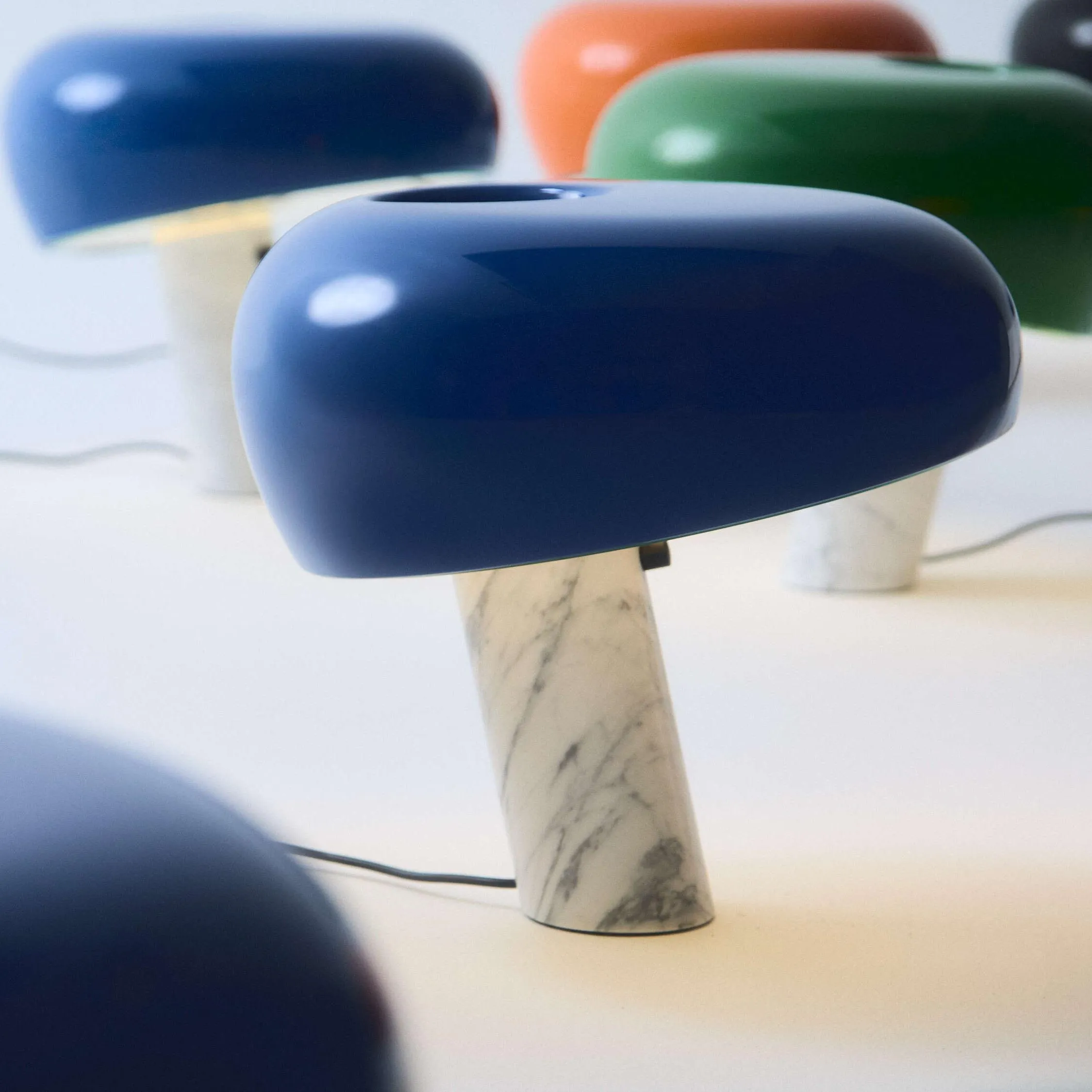 Snoopy - настольная лампа прямого света с эмалированным металлическим отражателем и основанием из белого каррарского мрамора.
