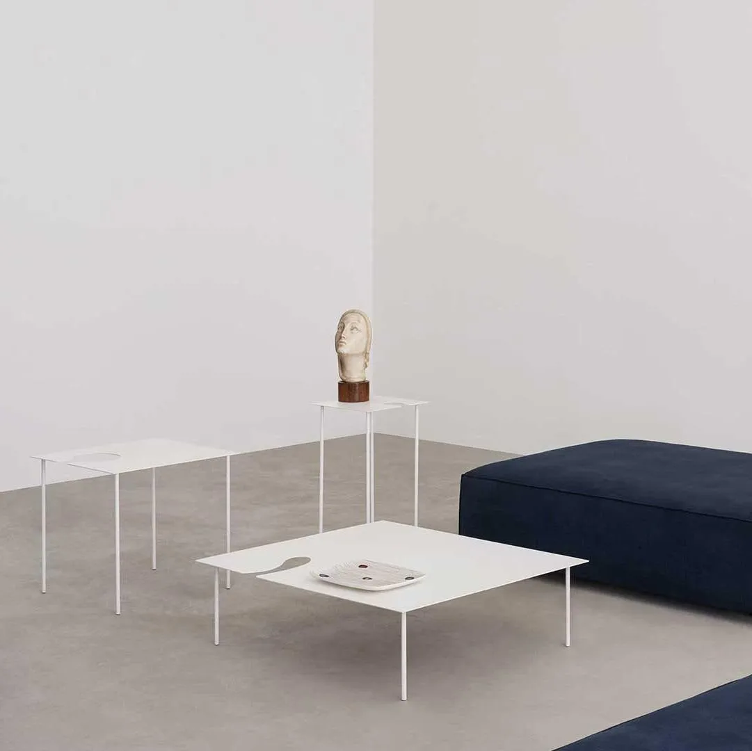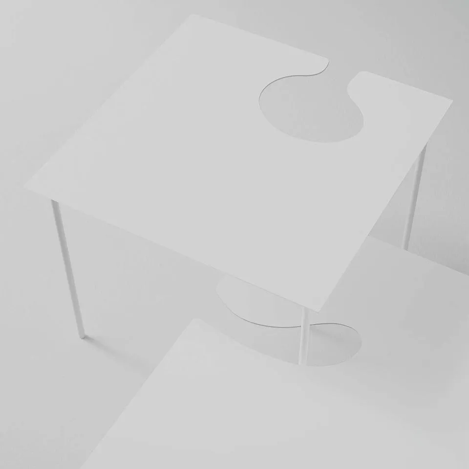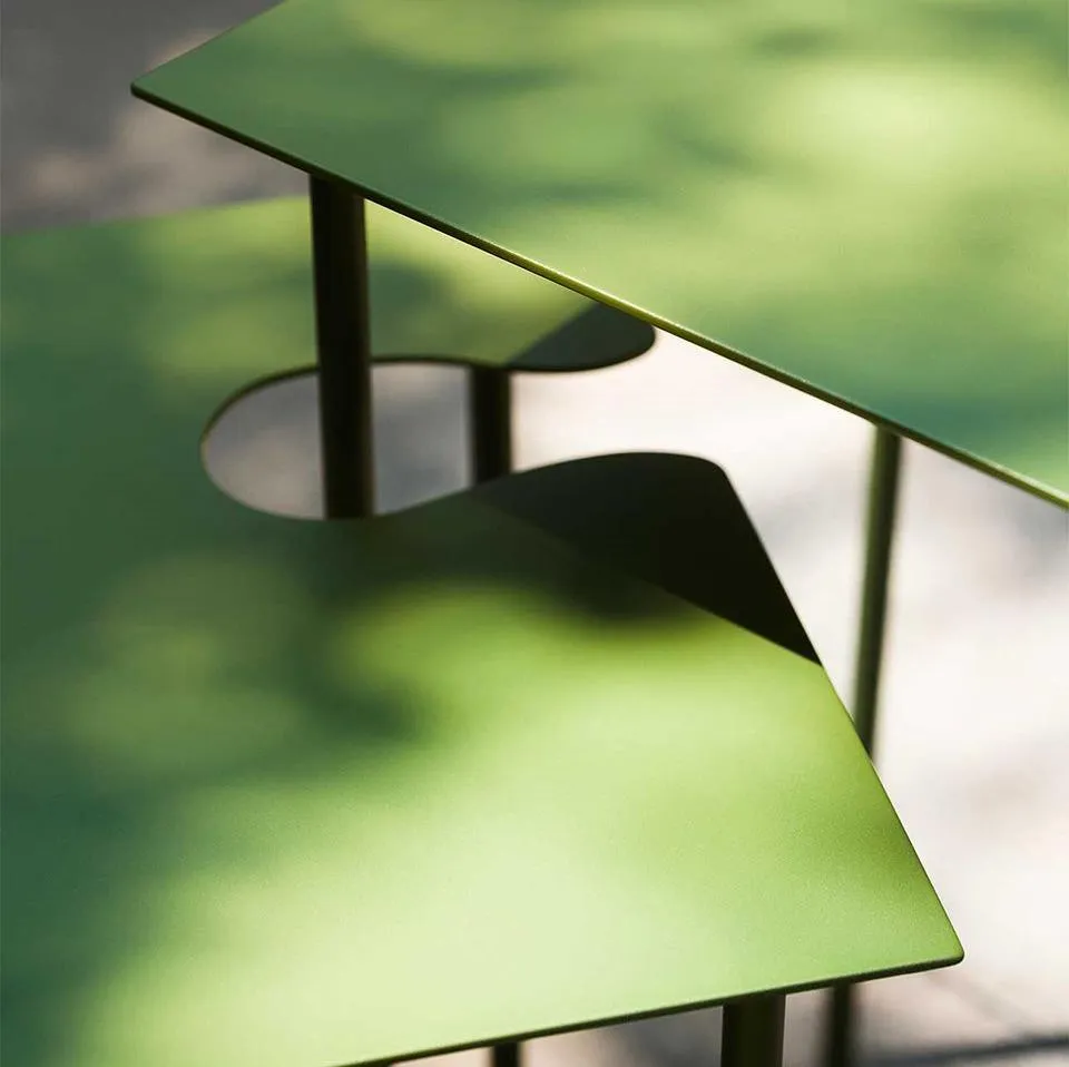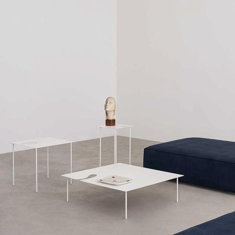 Воздушные приставные столики различных размеров и высоты, отличающиеся извилистой огранкой, которая, помимо эстетической красоты, позволяет создавать множество композиций.