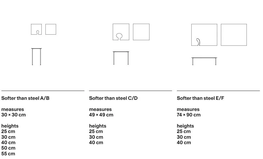 Ультралегкие резные столешницы различной формы и разной высоты дополняют линейку Soft Than Steel . Почти игривый дизайн в стиле Nendo с интересными индивидуальными вариациями и дополнительными элементами.