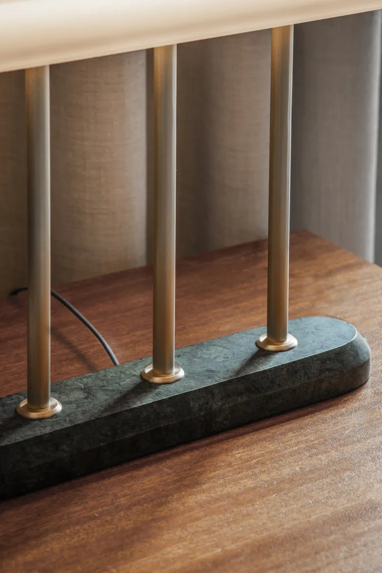 Настольная лампа Spate обеспечивает богатство и комфорт благодаря модному стилю ар-деко. Теплый свет излучается благодаря плафону из стекла цвета опала . Атласная латунь и мрамор подчеркивают роскошь, которая дополняет этот предмет.