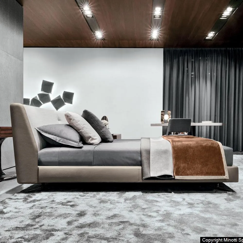 Кровать Spencer обладает универсальной индивидуальностью, что позволяет с уверенностью сочетать ее с любыми тканями и кожей из коллекции Minotti и стильно вписываться в любую обстановку спальни.