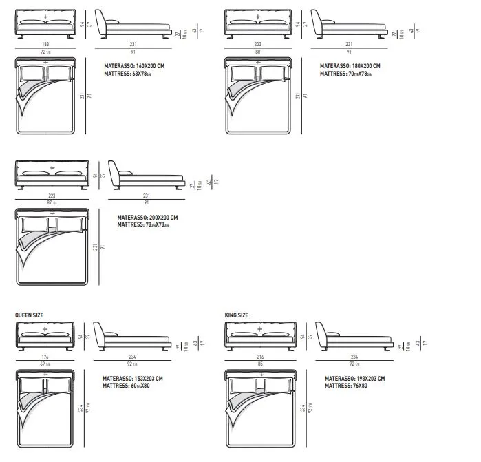 Каркас кровати, полностью обтянутый тканью или кожей, полностью лишен острых углов, а также имеет обволакивающее изголовье - мягкую обивку, которая становится еще более привлекательной благодаря плюшевому одеялу, - которое располагает ко сну, создавая приятное ощущение интимности и защищенности. Элегантный дизайн олицетворяет кровать, которая обеспечивает максимальный комфорт и, благодаря форме изголовья, поддерживает правильную позу для чтения. Кровать опирается на авангардные ножки из литого под давлением алюминия оловянного цвета, которые установлены под углом 45° к краям кровати, чтобы можно было ходить по ней, избегая неприятных столкновений с нежелательными предметами.