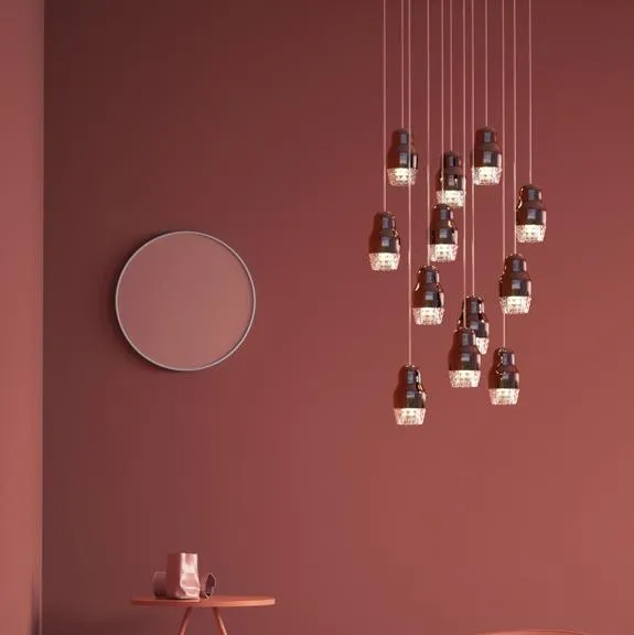 Светильник подвесной, состоит из двенадцати подвесов с общим основанием.