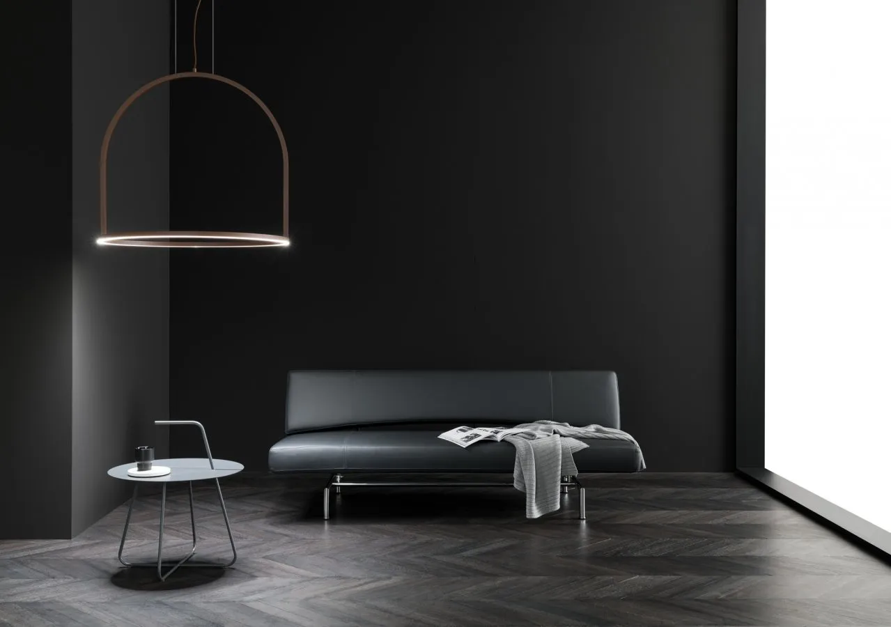 Коллекция состоит из настенных светильников, потолочных светильников и подвесных светильников из алюминия. Доступен в коричневом и сером цветах, и нескольких размерах. Встроенный светодиодный затемняемый источник света.