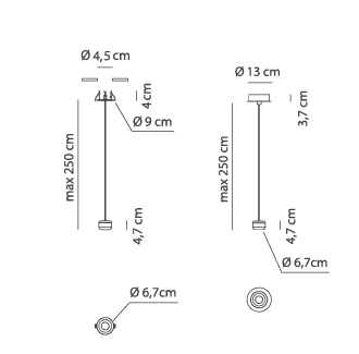 Коллекция состоит из алюминиевых потолочных светильников и подвесных светильников, также в утопленном исполнении. Доступен в нескольких цветах и размерах. Встроенный диммируемый светодиодный источник света.