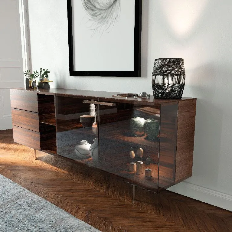 Комод современного дизайна, привлекающий к себе всеобщее внимание- это шедевр баланса между прозрачностью стекла и теплотой дерева.