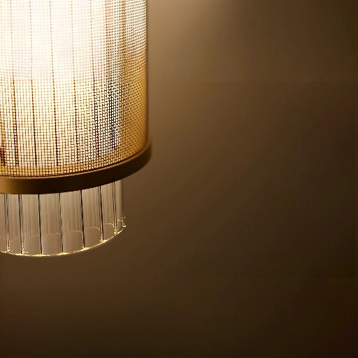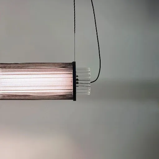 Slim Skin состоит из стеклянного цилиндра (доступного в опаловом белом или ребристом прозрачном стекле), покрытого металлической сеткой с латунной или черной отделкой. Металлическая сетка создает эффект муара, который исключает любые блики и обеспечивает большой визуальный комфорт.