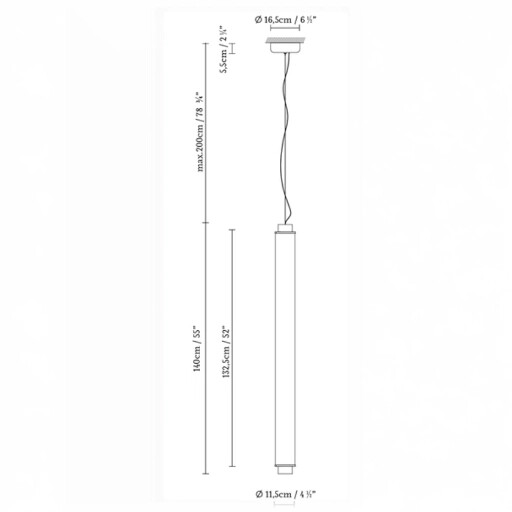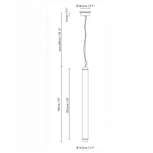Горизонтальный подвес из коллекции Slim Skin имеет диаметр 12 см и доступен в двух различных длинах: 70 см и 140 см.