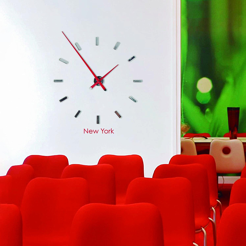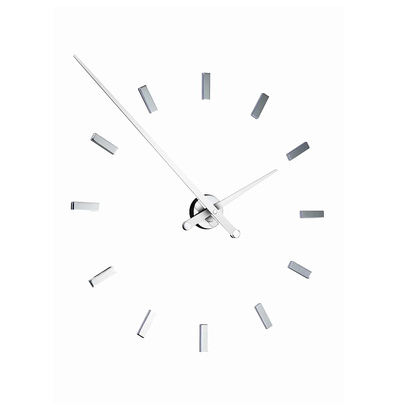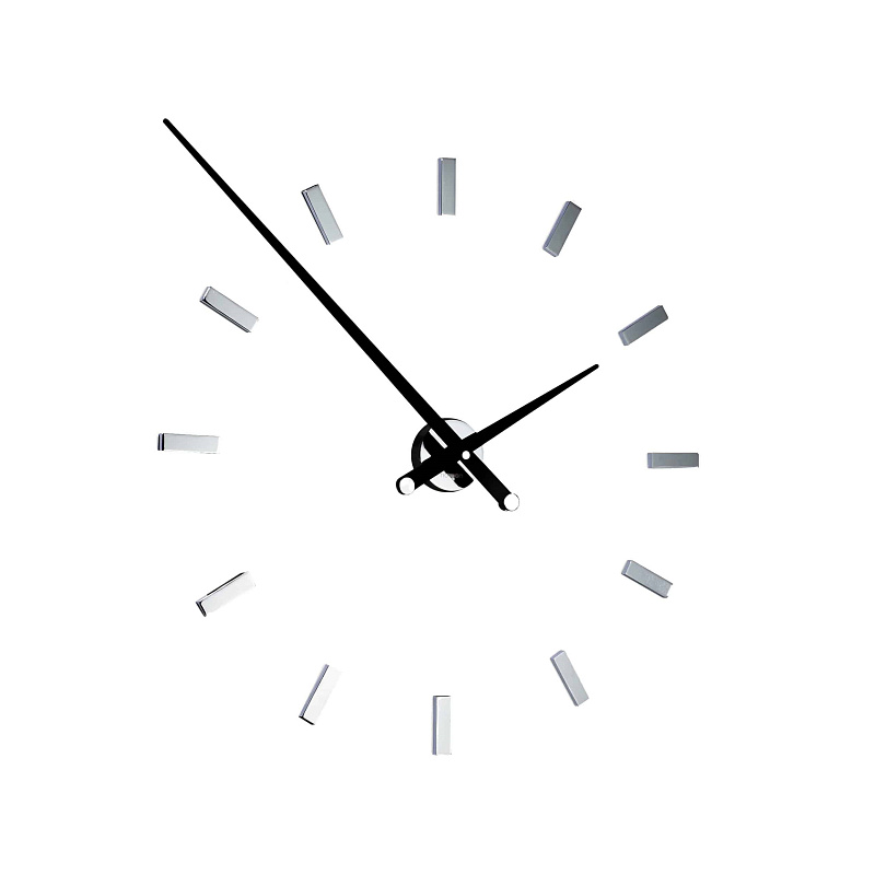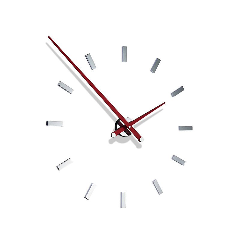 Авангардный промышленный дизайн. Стрелки, покрытые лаком (черного, красного или белого цвета), превосходят часовые метки, становясь главными героями. Их настенная установка может быть изменена в соответствии с требуемыми размерами.