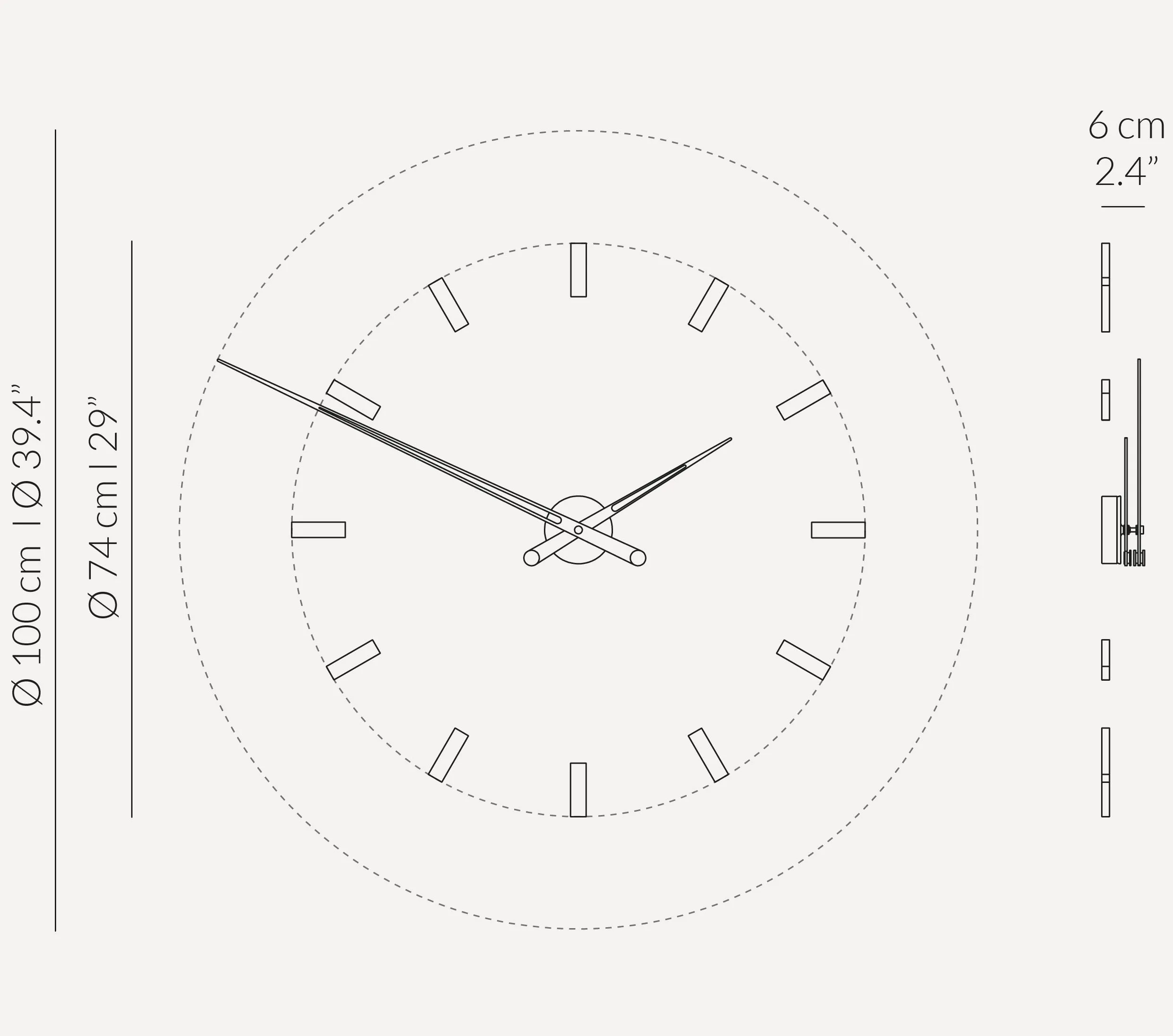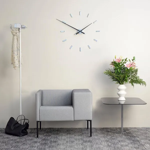Часы отличаются простыми, универсальными и сдержанными линиями. Элегантность этих моделей заключается в легкости их сигналов времени, которые рисуют на стене воображаемый круг.