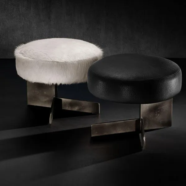 Стул Tambourine играет на контрасте между строгой металлической ножкой и мягким круглым сиденьем, создает характерный яркий декоративный акцент.