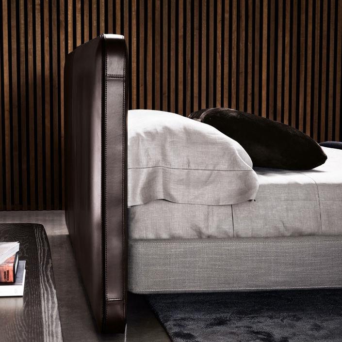 Искусное исполнение, напоминающее о высококачественных изделиях из кожи, придает кровати Tatlin утонченную элегантность.