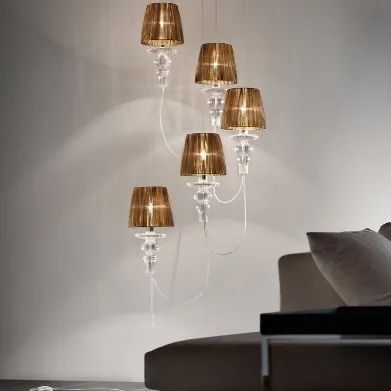 Цвет арматуры хром.Прозрачное стекло.Абажуры выполнены из органзы в цвете Golden teak.