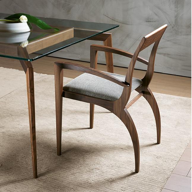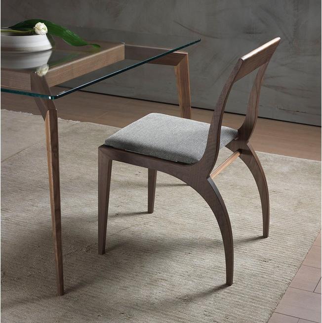 Современный обеденный стул canaletto из орехового дерева, также доступен в варианте "во главе стола". Сиденье с мягкой обивкой и чехлом