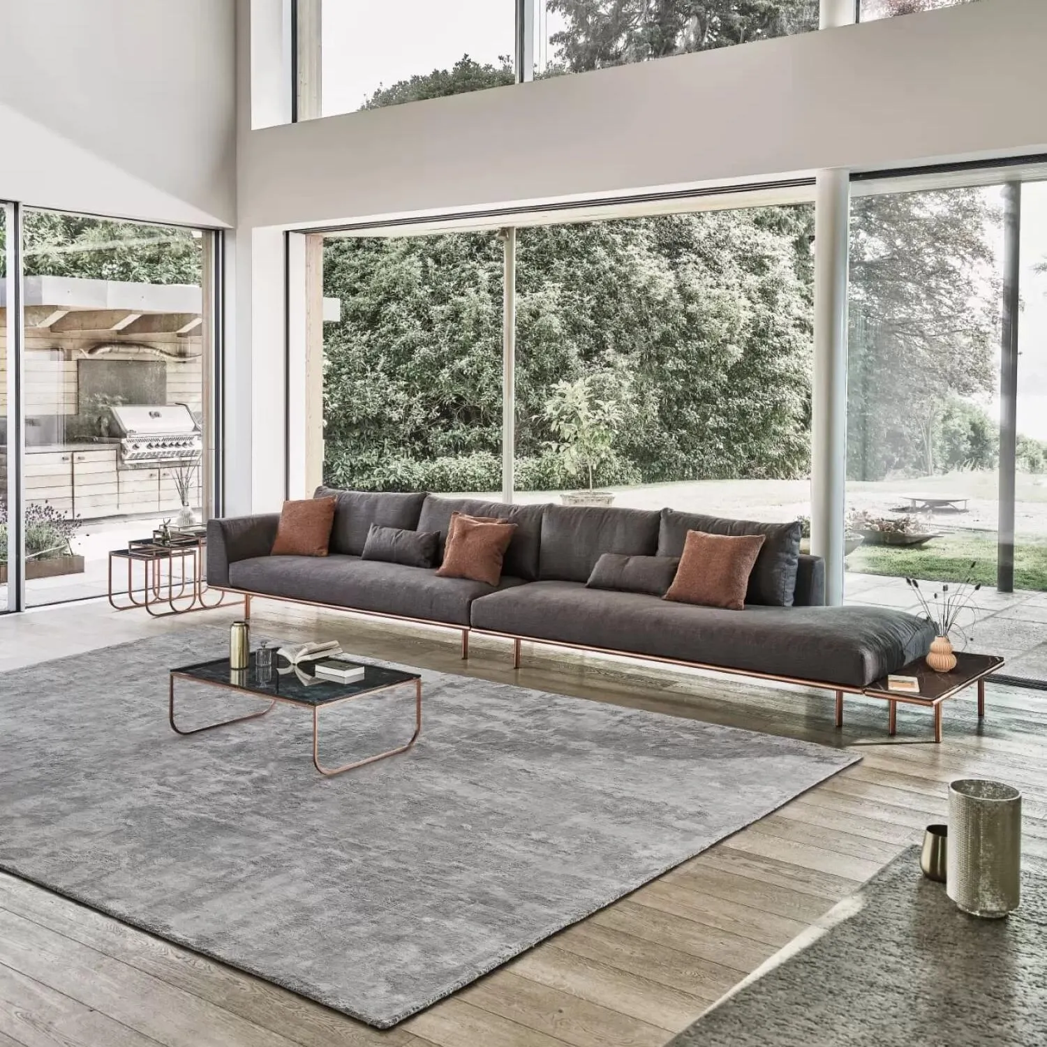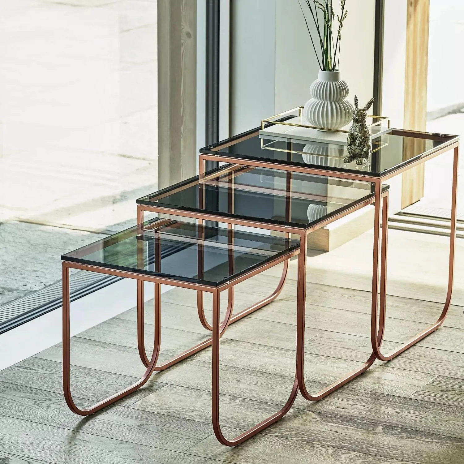 Журнальный столик с лакированным металлическим каркасом, столешницей из шпона дерева, глянцевым стеклом, бархатисто-матовым лакированным стеклом с защитой от царапин, суперкерамикой или супермолекулой.
