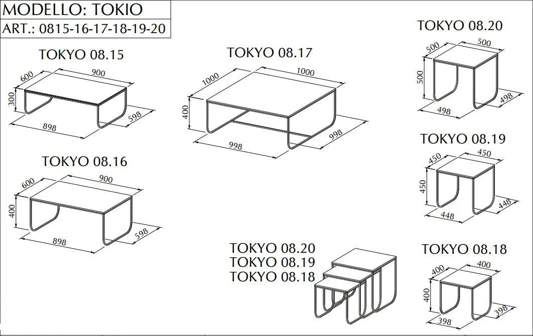 В коллекцию Tokio входит 7 моделей (см. техническую схему)