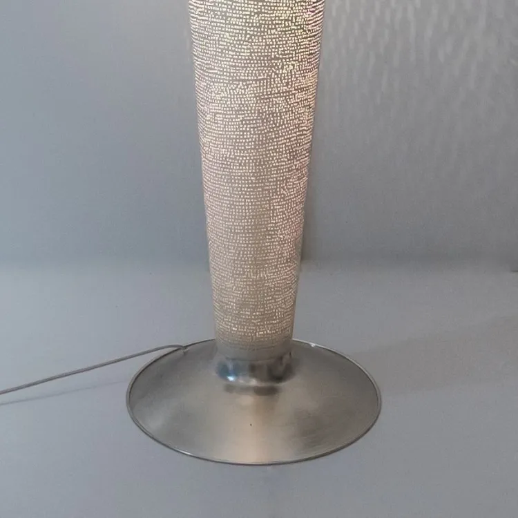 Серебряный дизайнерский торшер Babylon - Filisky - Silver – Zenza – это волшебный мир, заключенный в лампу. Просто включите свет, и вы увидите невероятный танец света и тени, приводящий в восторг. Каждая деталь декоративного напольного светильника Бабилон Филискай Сильвер выполнена вручную – вы не встретите двух одинаковых ламп. Мастера бережно хранят технику медных кузнецов, перенимая при изготовлении ламп Зенза их навыки. Перфорированный узор одного торшера Babylon Filisky не будет повторяться в другом, и вы можете быть уверены, что ваш светильник Zenza единственный в своем роде.