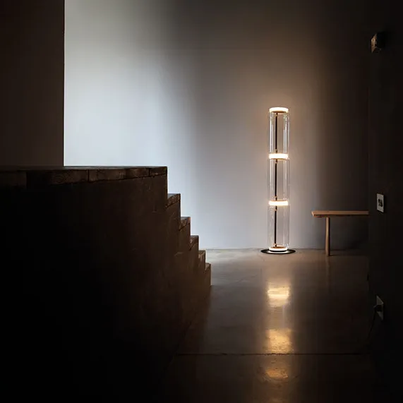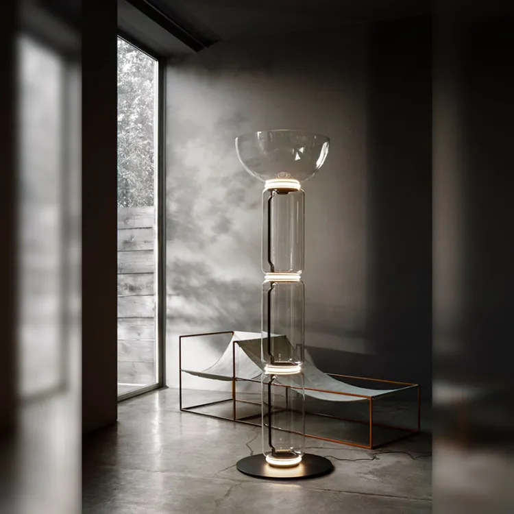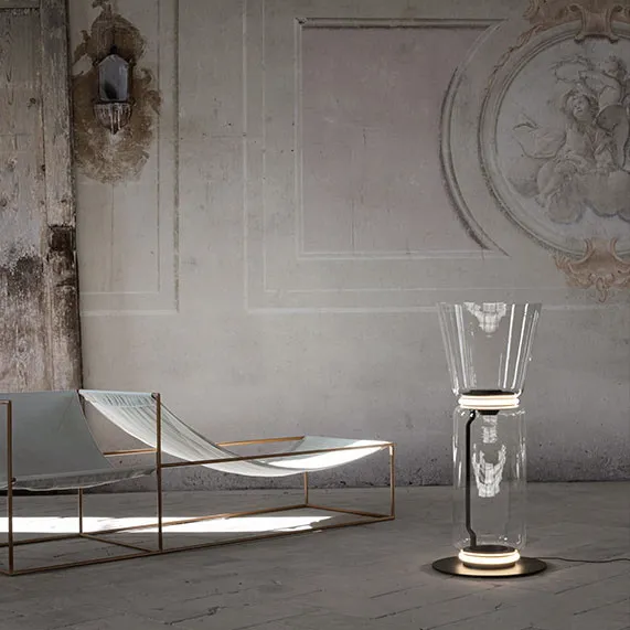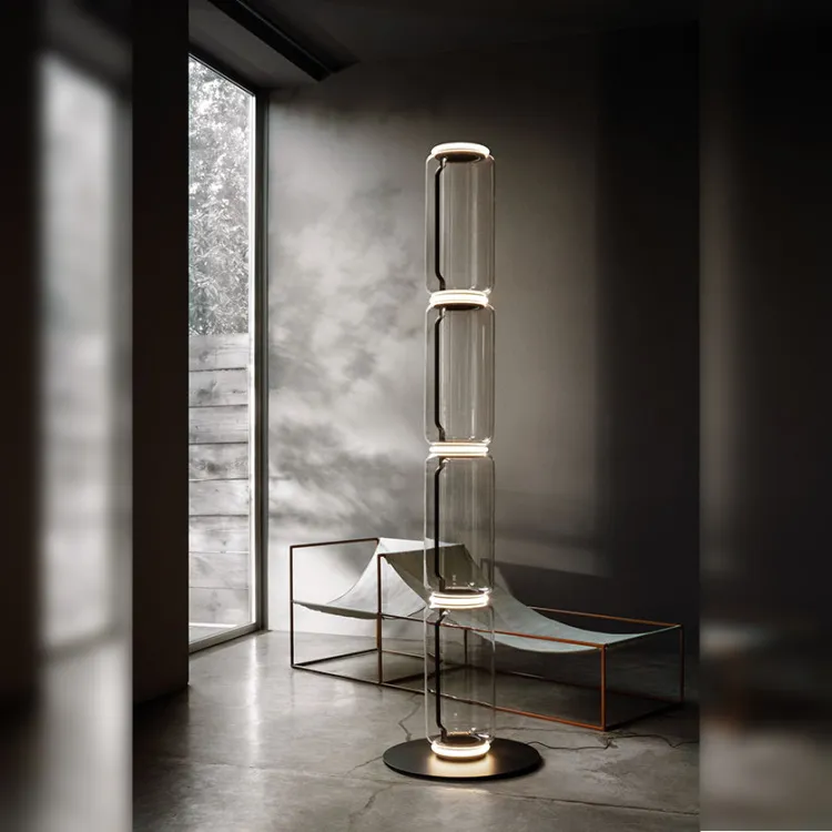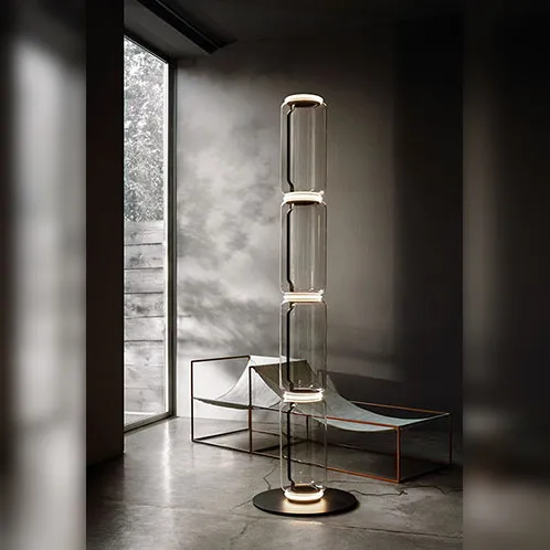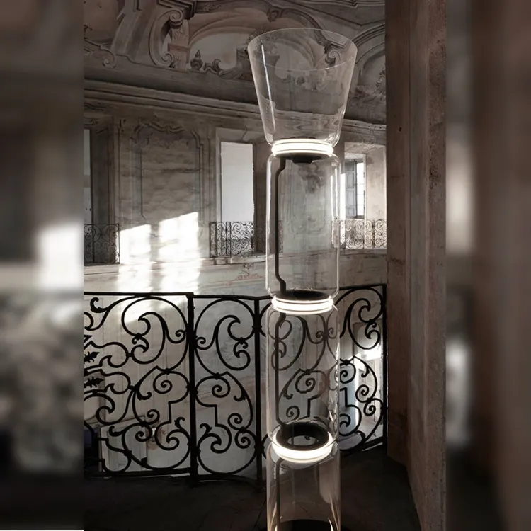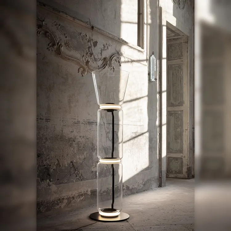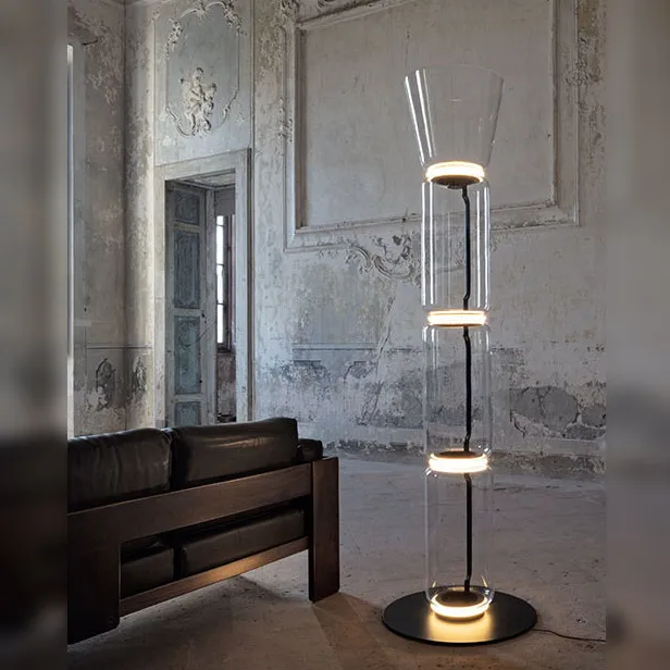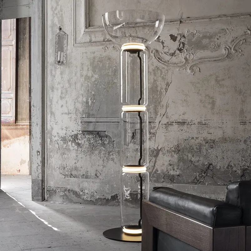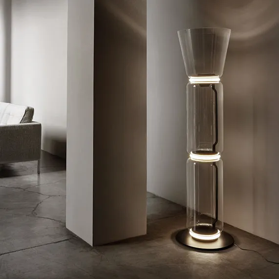 [~PREVIEW_TEXT] => Декоративные торшеры Noctambule Floor от Flos - это удивительная задумка дизайнера Константина Грчича. Цилиндрическая полусферическая структура прозрачного выдувного стекла словно парит в воздухе. Силиконовые кольца ламп будто сжимают торшер Ноктамбуле, деля его на 2 или 3 части.