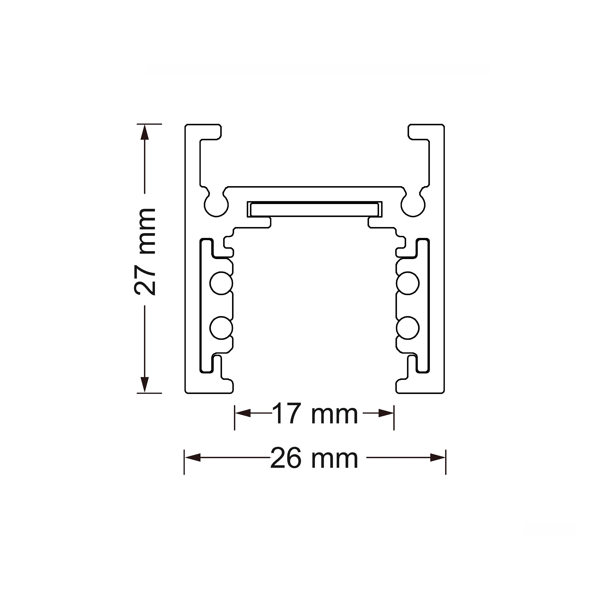 Трек магнитный низкопрофильный, алюминий, черный, 48V, длина 2500 мм, ширина 26 мм, высота 27 мм, возможно подключение по DALI, торцвые заглушки не в комплекте