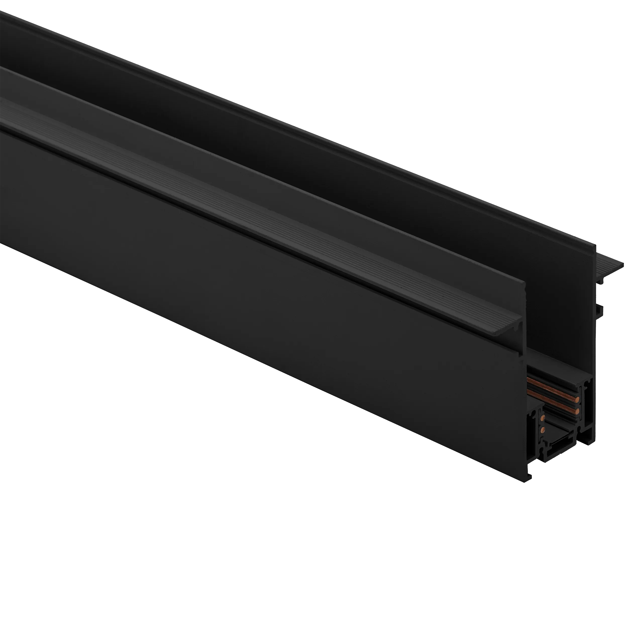 Трек магнитный встраиваемый, алюминий, черный, 48V, длина 2500 мм, ширина 70 мм, высота 53 мм, видимая часть 26 мм, возможно подключение по DALI, торцвые заглушки не в комплекте