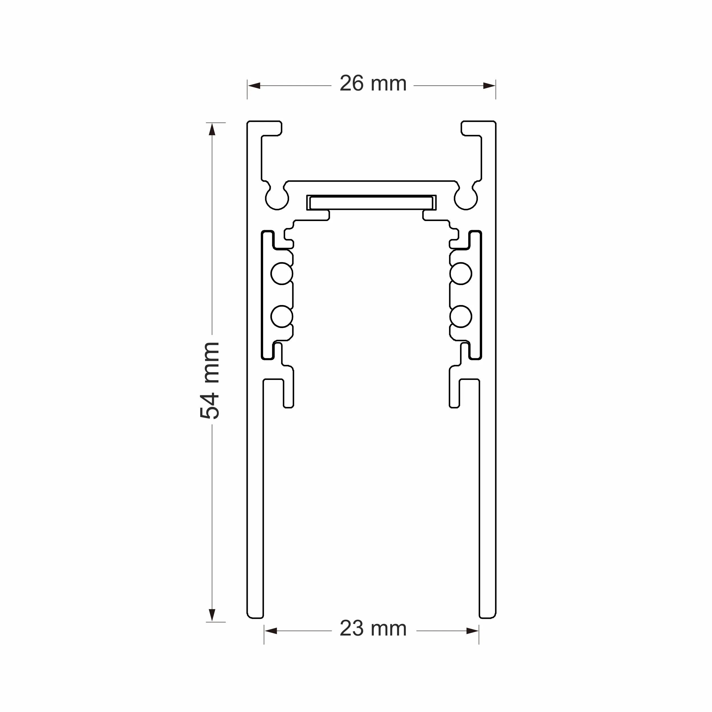 Трек магнитный высокопрофильный, алюминий, черный, 48V, длина 2500 мм, ширина 26 мм, высота 53 мм, возможно подключение по DALI, торцвые заглушки не в комплекте