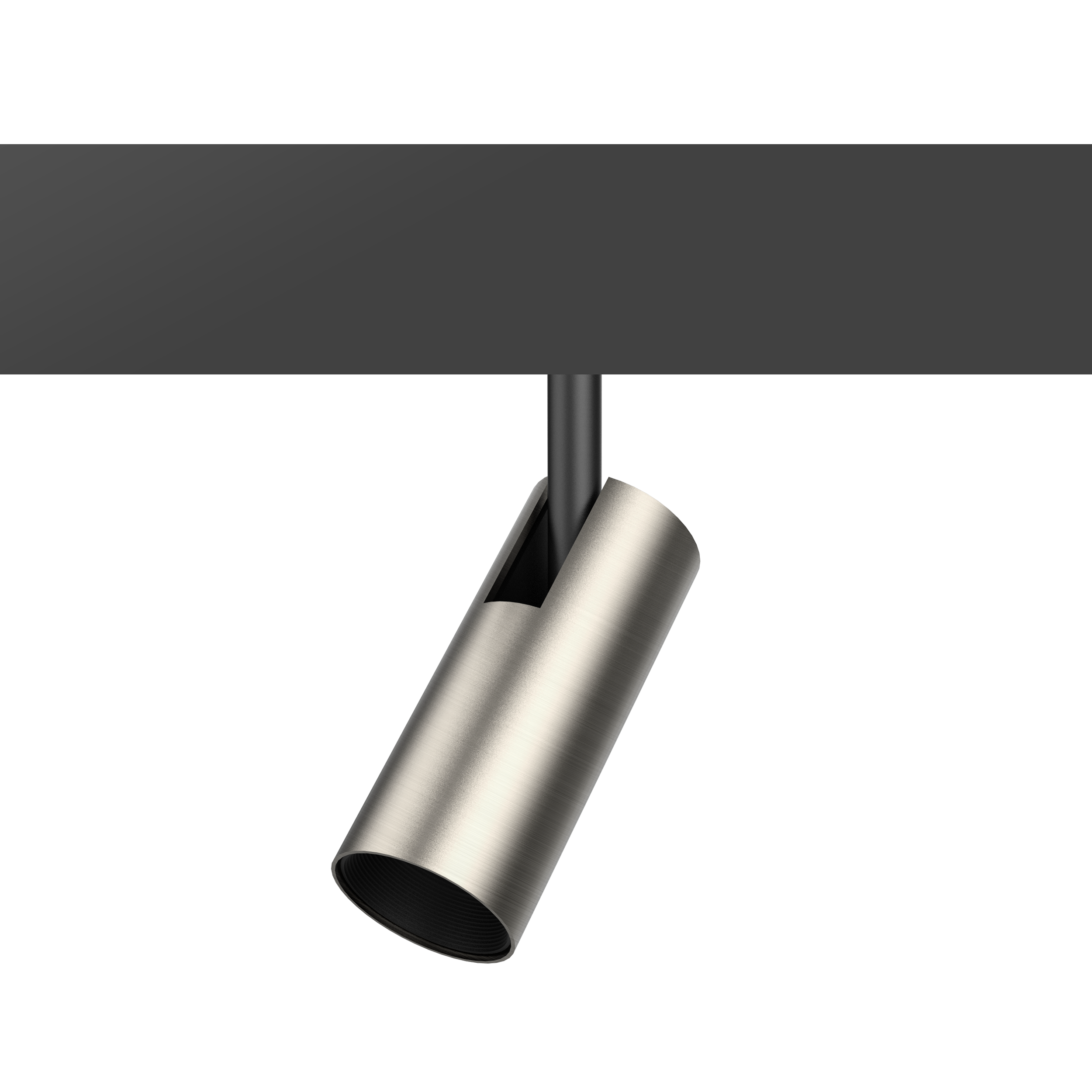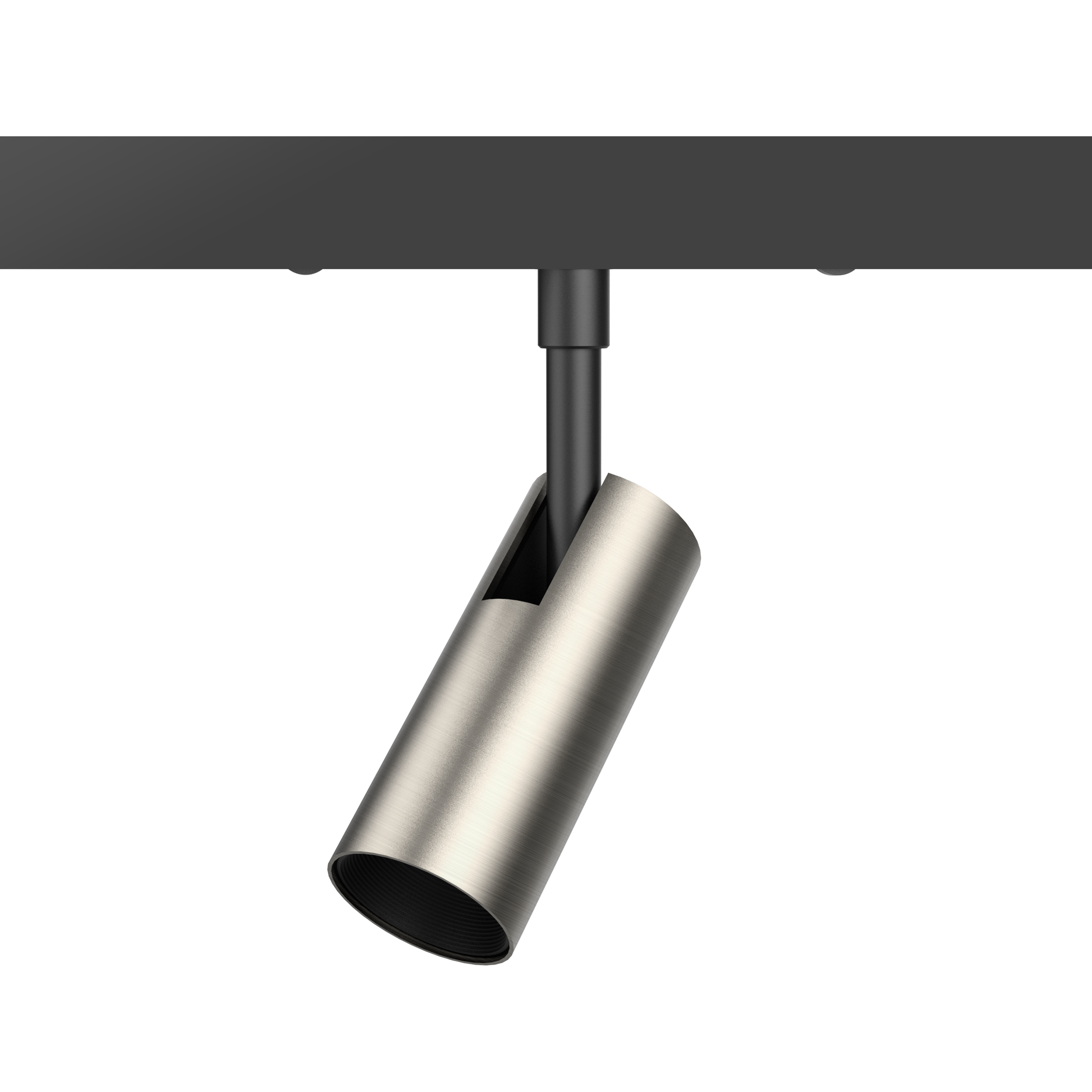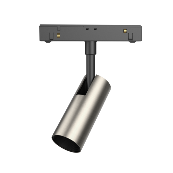 Трековый светодиодный спот, алюминиевый корпус цвета мат. никель, фронтальное декор. кольцо черного цвета, 48V, 10W, 3000K, 700Lm, 40°, CRI>90, IP20, макс высота 136 мм, ширина адаптера 168 мм, высота плафона 85 мм, Ø корпуса плафона 35 мм