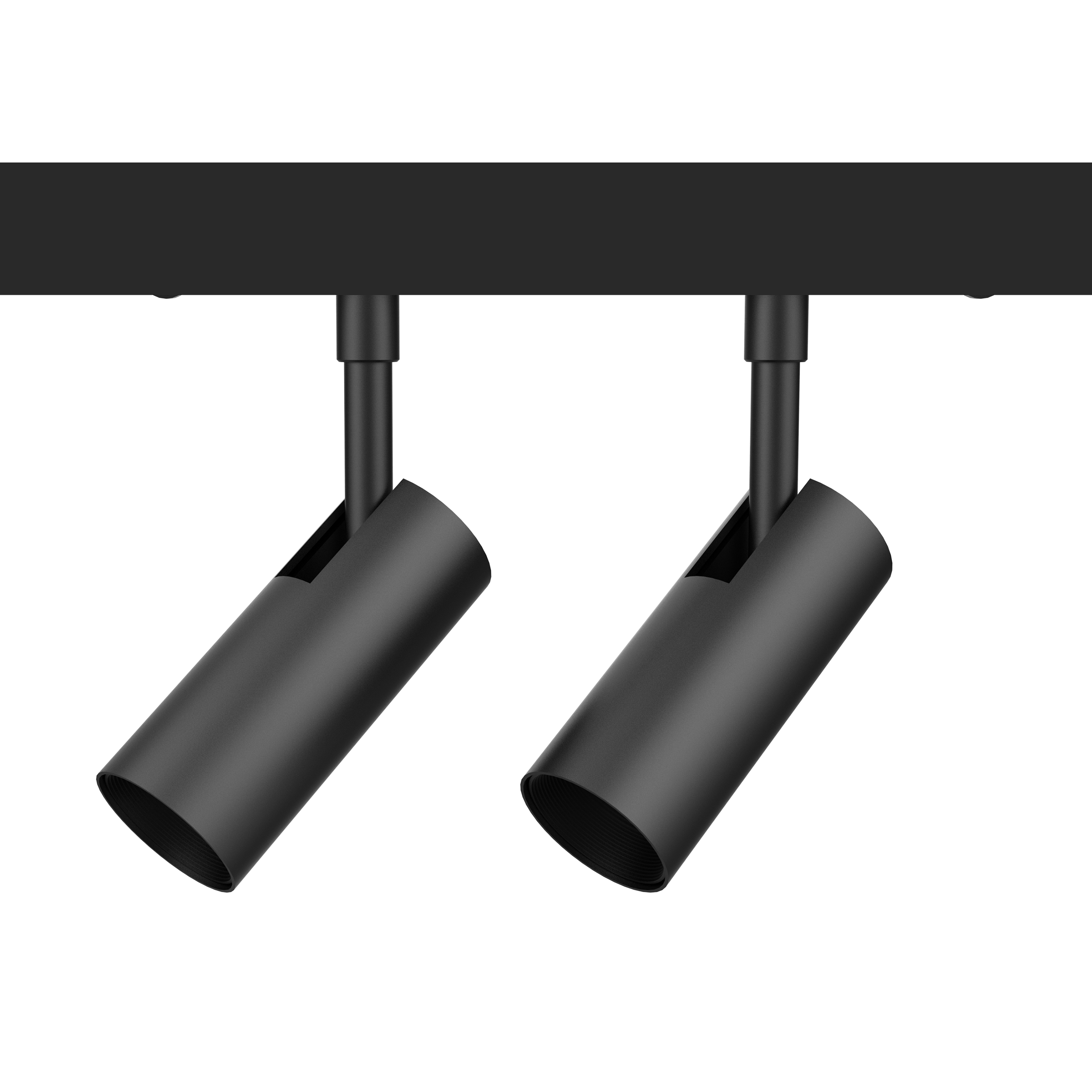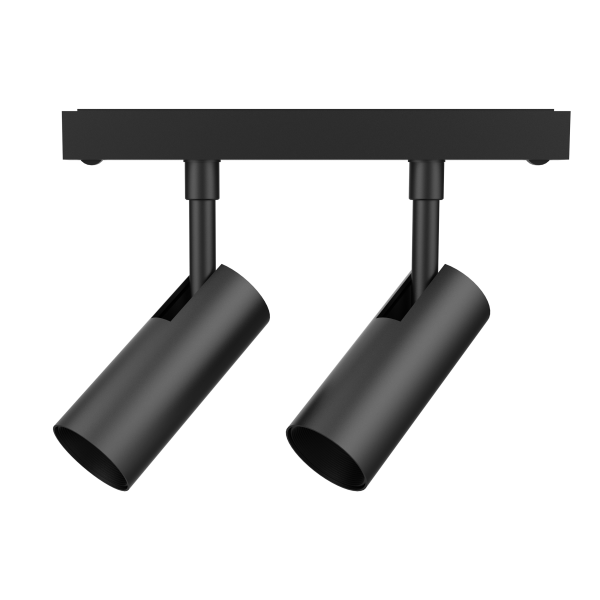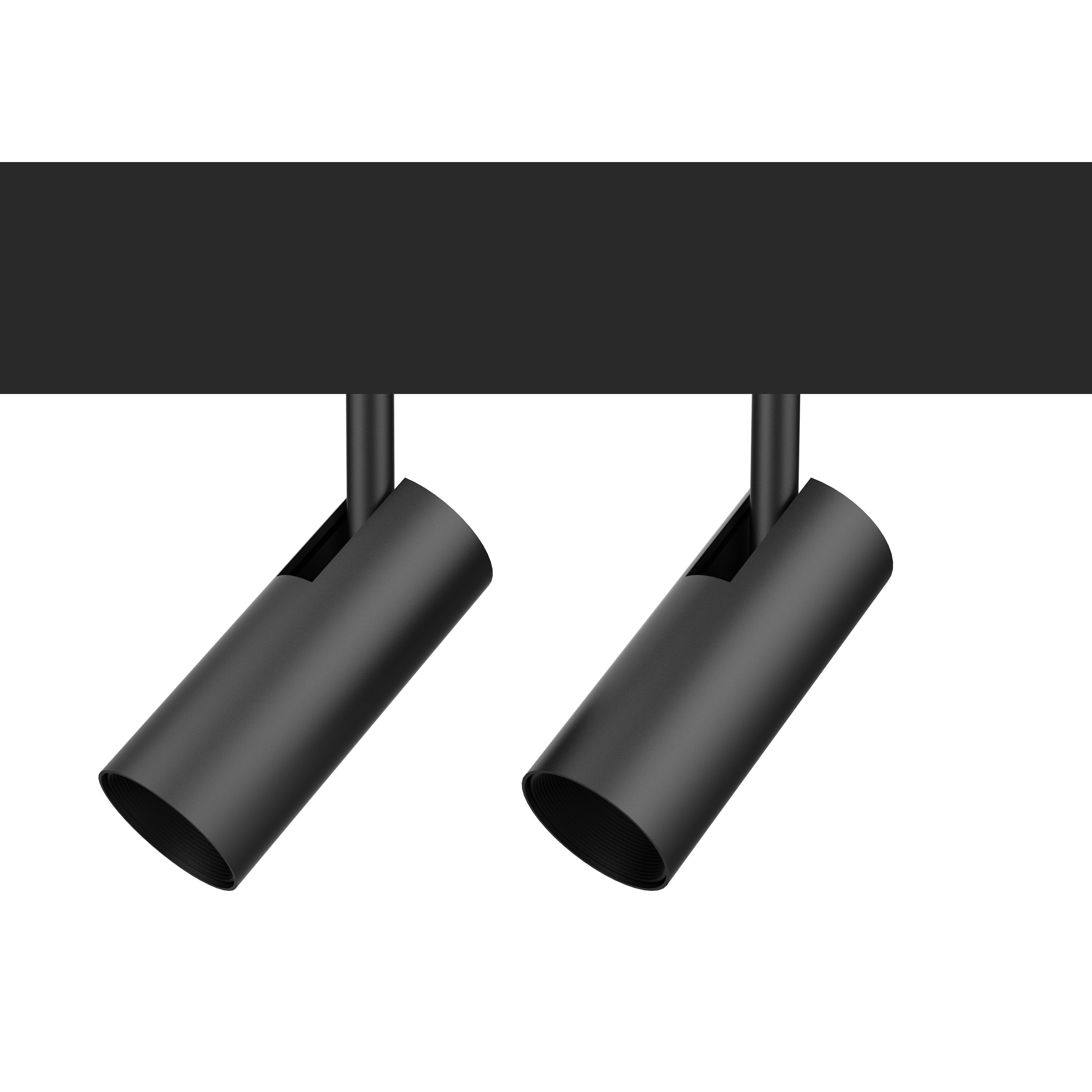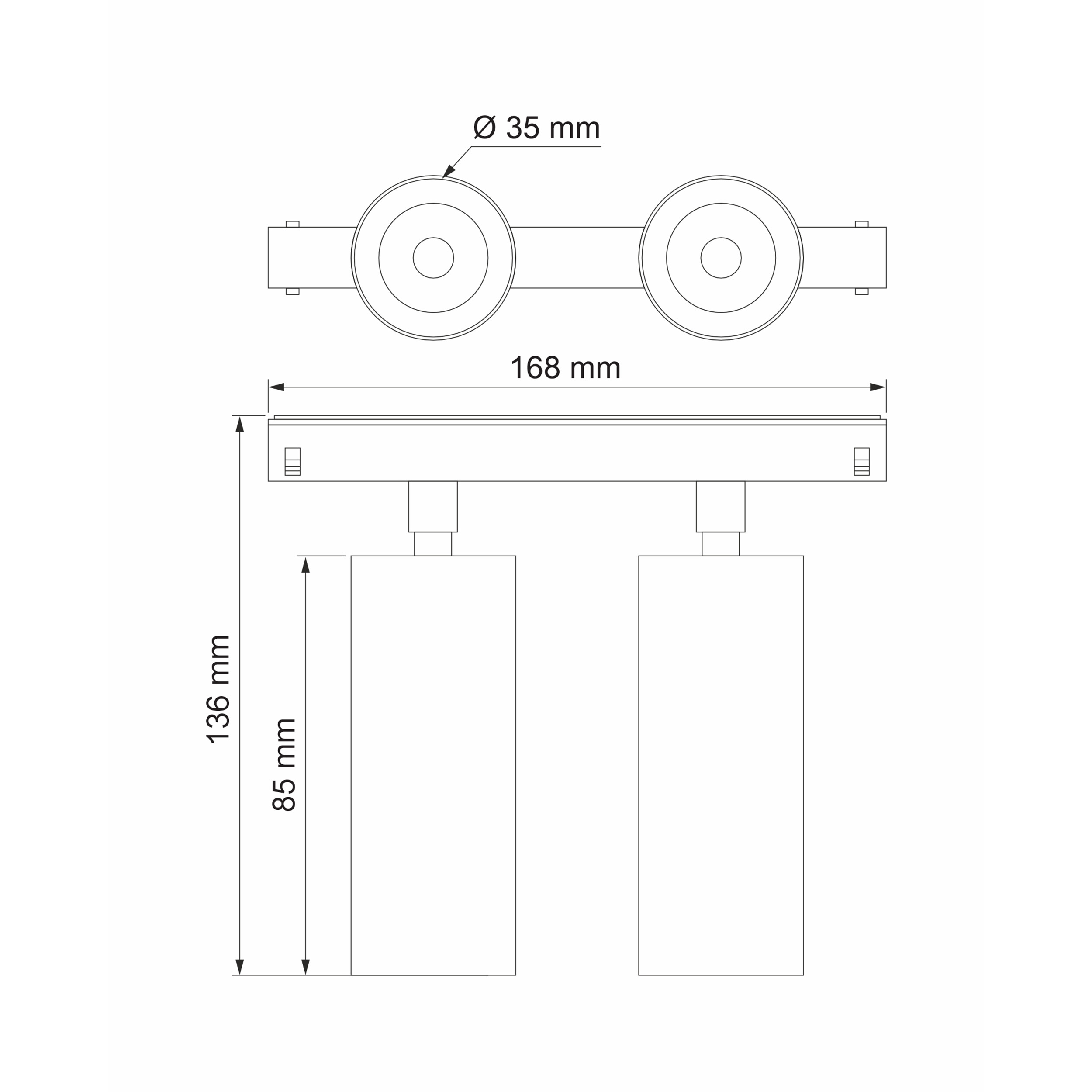 Двойной трековый светодиодный спот, алюминиевый корпус черного цвета, фронтальные декор. кольца черного цвета, 48V, 20W, 3000K, 2х700Lm, 2х40°, CRI>90, IP20, макс высота 136 мм, ширина адаптера 168 мм, высота плафона 85 мм, Ø корпуса плафона 2х35 мм
