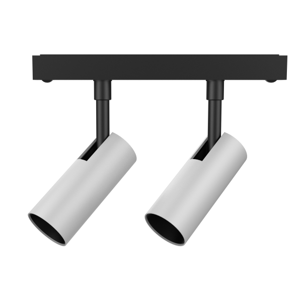 Двойной трековый светодиодный спот, алюминиевый корпус белого цвета, фронтальные декор. кольцо белого цвета, 48V, 20W, 3000K, 2х700Lm, 2х40°, CRI>90, IP20, макс высота 136 мм, ширина адаптера 168 мм, высота плафона 85 мм, Ø корпуса плафона 2х35 мм