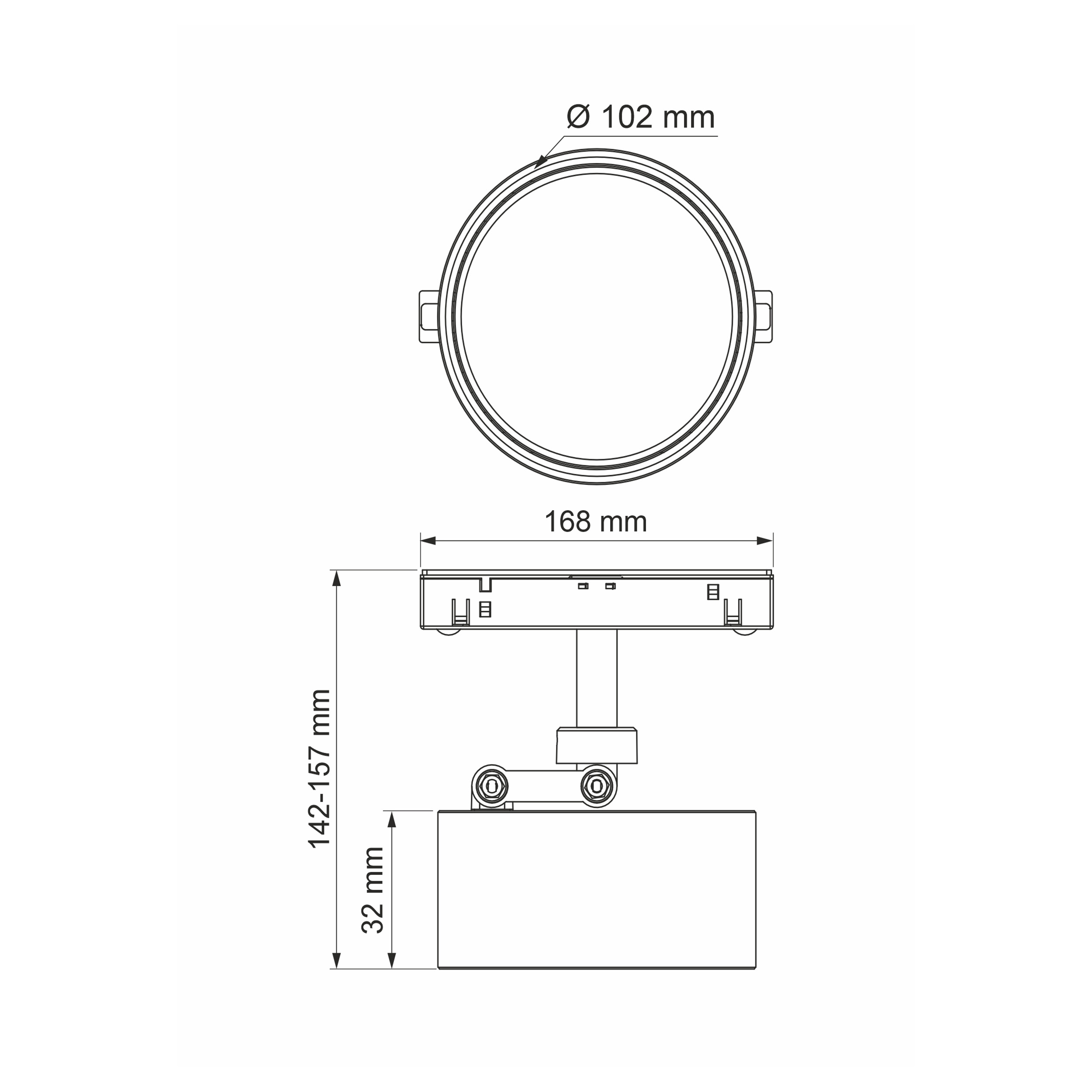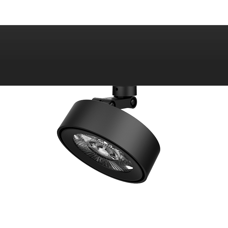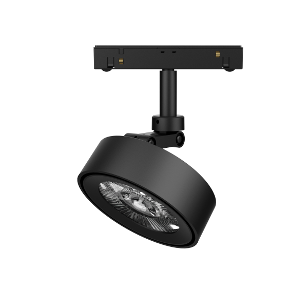 Трековый светодиодный светильник, алюминиевый корпус черного цвета, 48V, 18W, 3000K, 1500Lm, 36°, CRI>90, IP20, макс высота 157 мм, ширина адаптера 168 мм, Ø корпуса плафона 102 мм