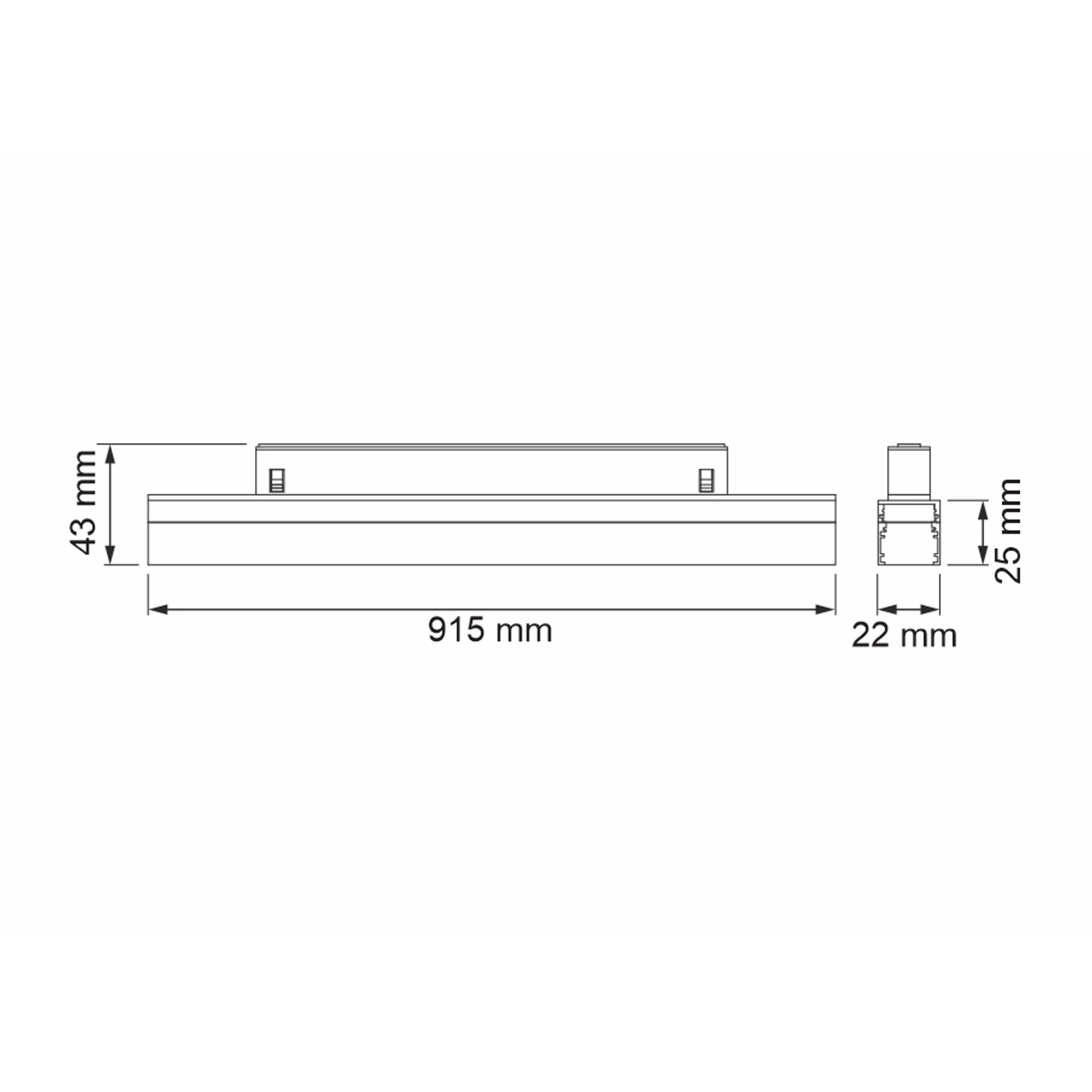 Трековый линейный светильник, алюминиевый корпус черного цвета, 48V, 32W, 3000K, 2200Lm, 100°, CRI>90, IP20, длина 915 мм, ширина 22 мм, высота 43 мм
