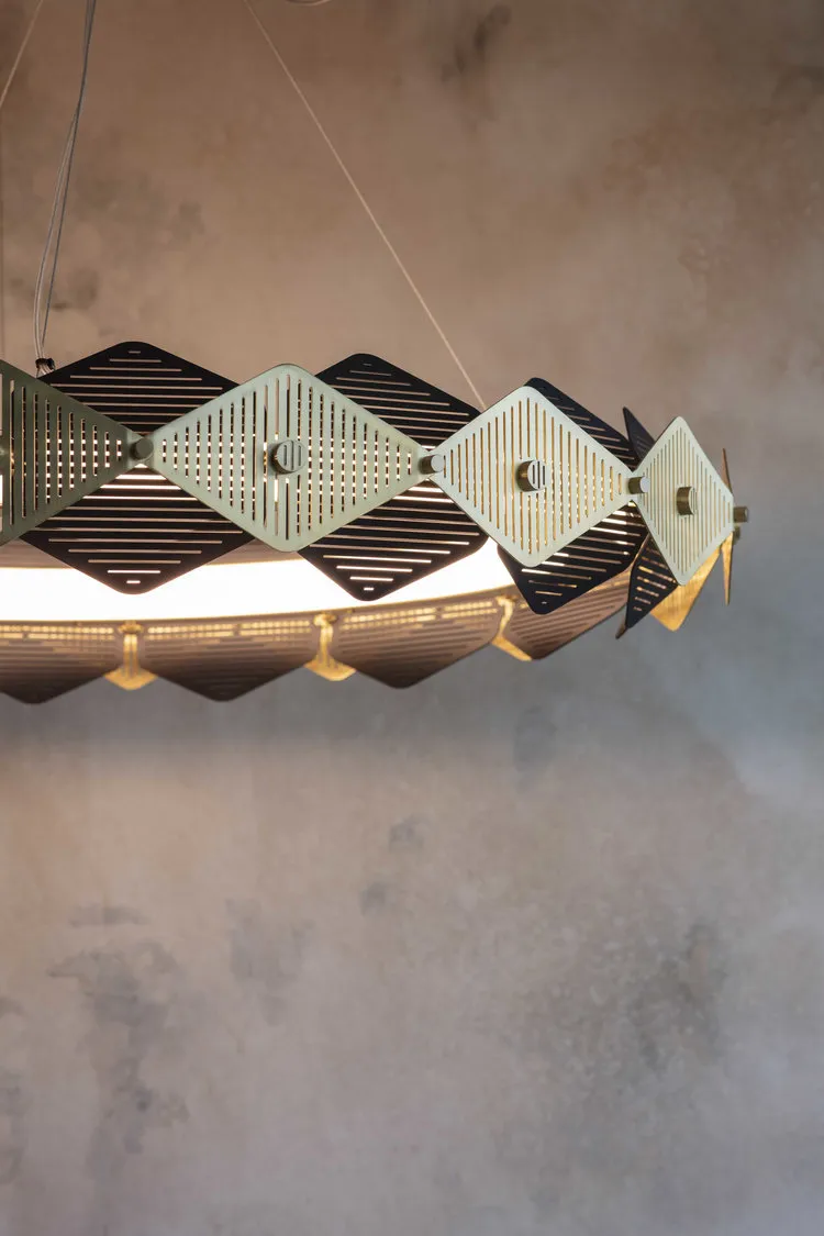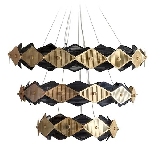 Трех уровневая каскадная люстра представляет собой сосредоточение малых, средних и больших подвесов Rote.
