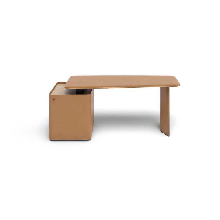 Седло-кожа/технодерево, а также ножки, предназначенные для размещения кабелей. Все столы, за исключением небольших, могут быть дополнены панелью управления modesty.