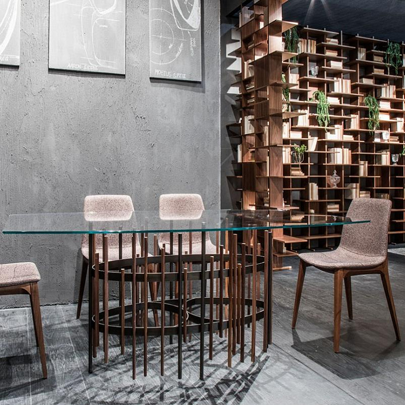 Изделия семейства Tube , разработанные архитектором Норберто Дельфинетти, отличаются оригинальной трубчатой конструкцией из металла, окрашенного в титановый цвет, и полосами из массива ясеня или ореха каналетто.
