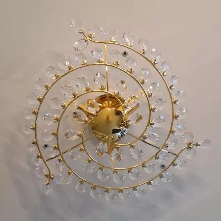 Потолочный светильник Vanessa 2163/40/PL/CR - это изящная и элегантная модель в классическом стиле от итальянской фабрики Prearo. Корпус выполнен из металла в золотом цвете. Три яркие лампочки скрываются за спиральной конструкцией, напоминающей лозу. По всей ее длине расположены хрустальные листики, которые ярко сверкают на свету.