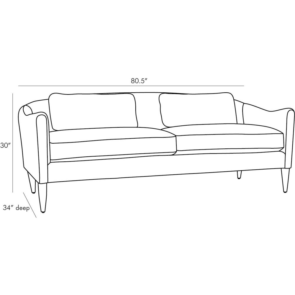 Источником вдохновения для создания этого дивана послужила винтажная парижская находка, которую обожают за ее уникальную форму и традиционный стиль. Несмотря на незначительные изменения, он остался верен причудливой манере своего предшественника, с деталями в виде прорезей, подчеркивающими изгибы. Он немного длиннее, чем традиционный диван, а подушки спинки сделаны чуть меньше, чем подушки сидений, которые имеют разрезной шов, чтобы создать игривый дисбаланс. Он установлен на ножках из клена, отделанных темным орехом.