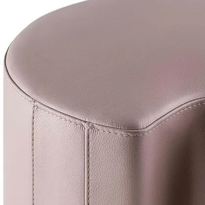 Пуф из полиуретана с покрытием, скрепленным смолой толщиной 3 мм, с внутренним основанием из фанеры. Обивка из ткани или кожи имеет двойную прострочку по бокам.
