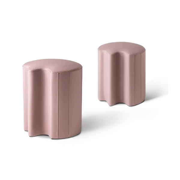 Пуф органичной формы, выполненный из ткани или кожи.